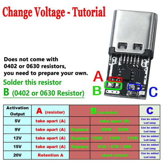 Delinx 2PCs USB-C Type-C PD Trigger Module Supports PD 2.0 3.0 Output DC 5, 9, 12, 15, 20 Volts 100W (PD to 5/9/12/15/20V)