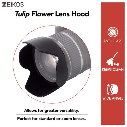 Zeikos 52MM Tulip Flower Lens Hood for Nikon, Canon, Sony, Sigma and Tamron Lenses, Comes with a Miracle Fiber Microfiber Cloth