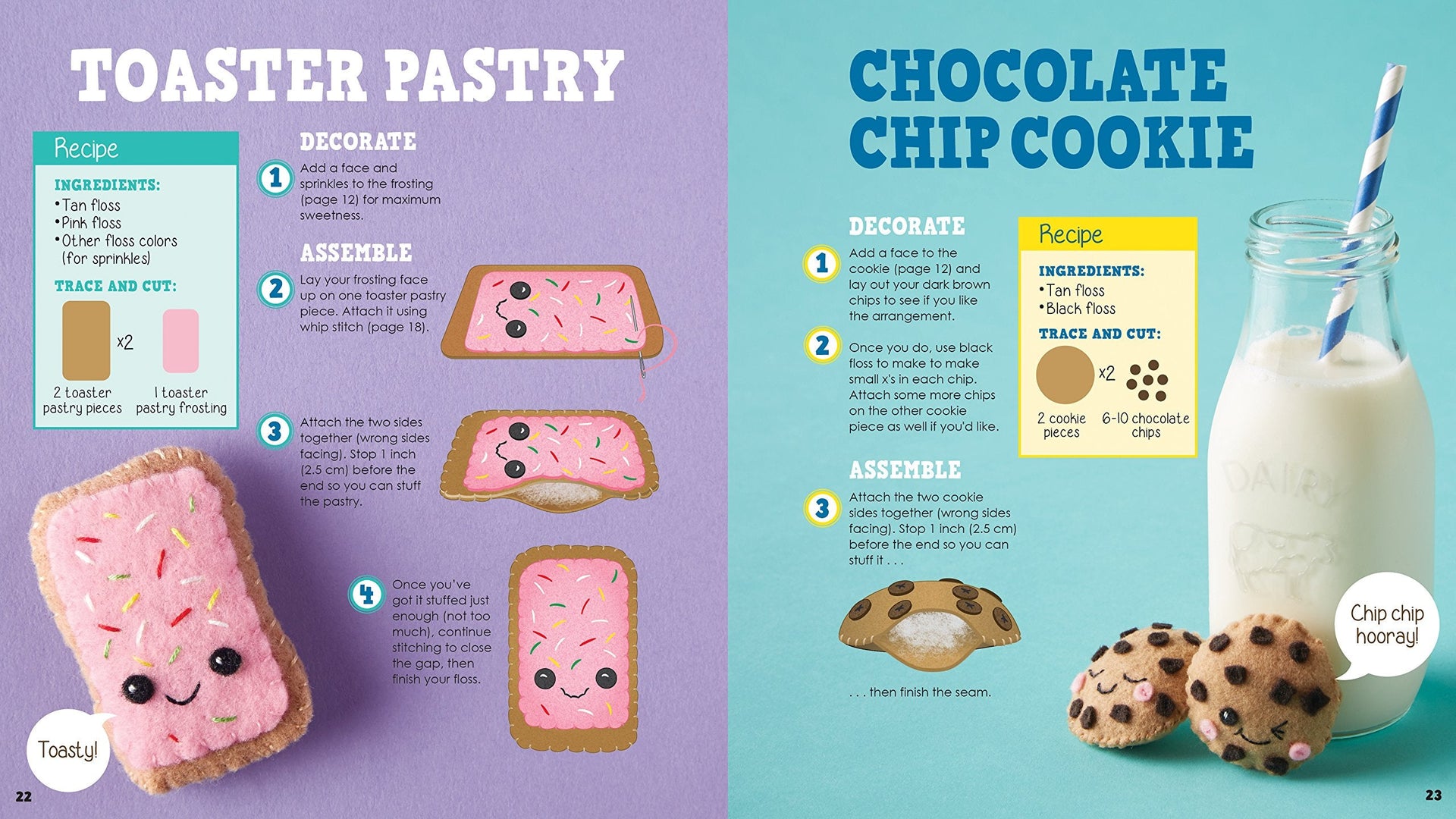 Stitch and stuff your favorite plush foods with sew mini treats! Make your own felt food with fabulous faces. Includes instructions, patterns, and materials for more than 18 cheerful, itty‑bitty food items as well as tips and tricks to customize your own designs. It's an instant recipe for fun!