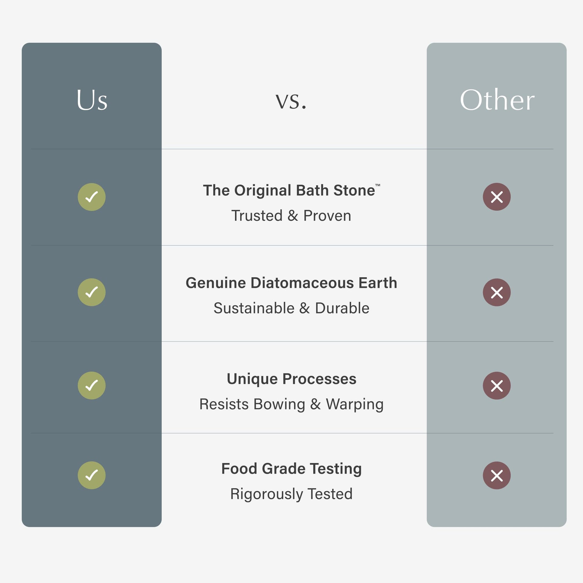 • QUICK-DRYING DIATOMACEOUS EARTH: Our Diatomaceous Earth Stone Bath Mat absorbs up to 150% of its weight in moisture that evaporates within seconds. This ceramic-like material feels like natural stone, offering a hygienic and durable alternative to traditional bath mats.