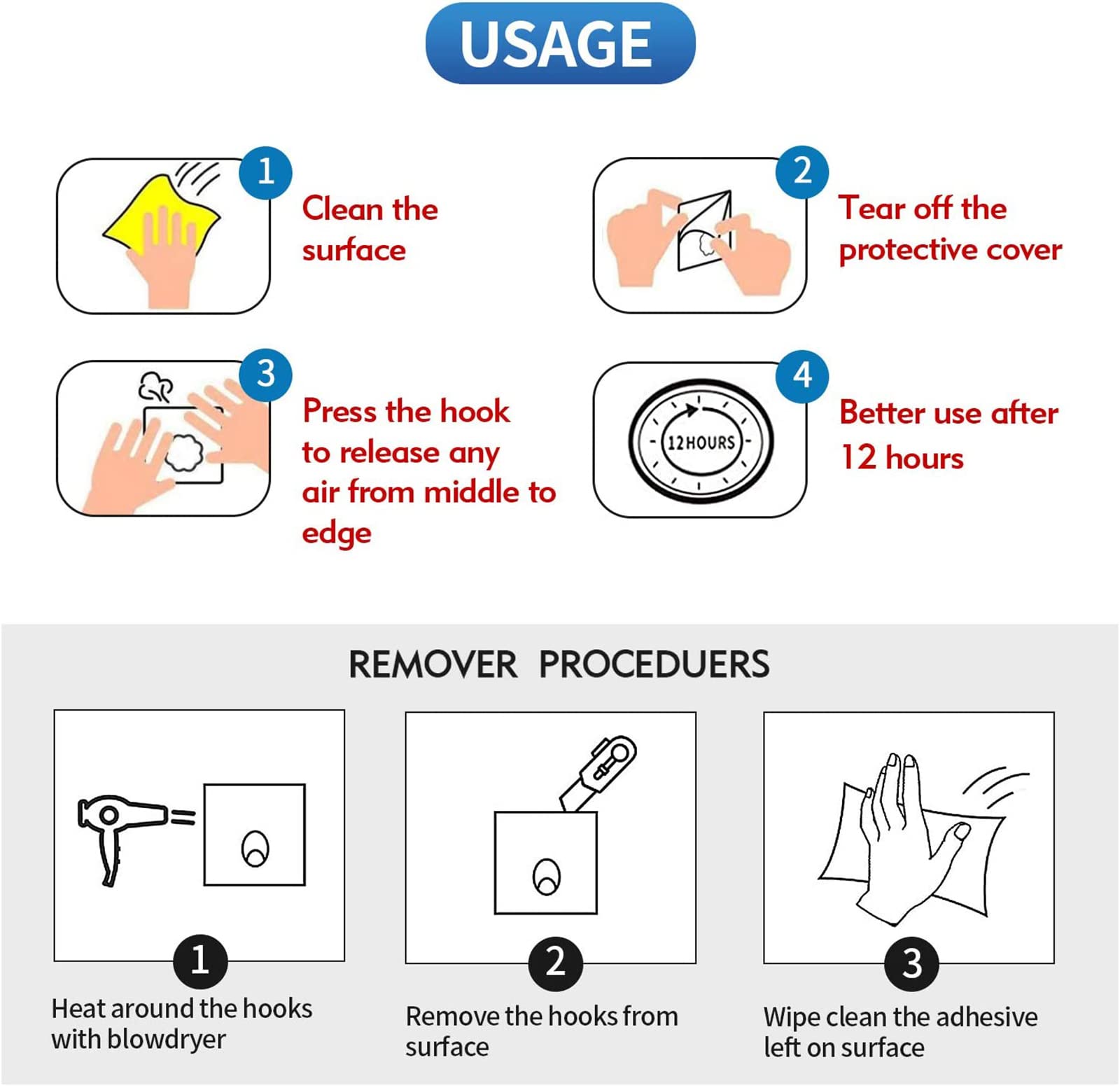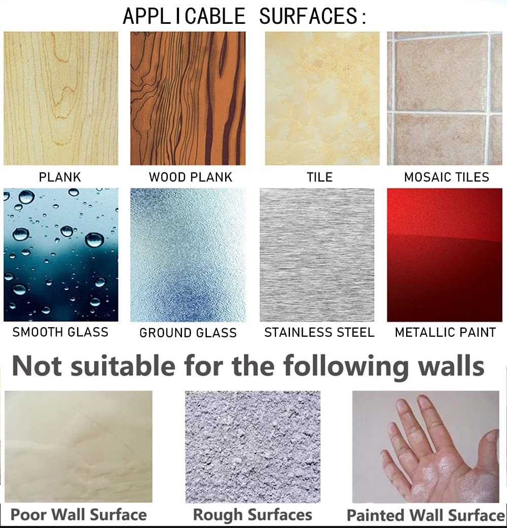 - WIDE APPLICATION -Widely used on a variety of surfaces, like Wood, Tile, Ceramic ,Metal, Plastic Surface and more (please pay attention that there are limits on painted walls),especially great for hanging shower or bath accessories in a bathroom or kitchen utensils and tools on a tile backsplash