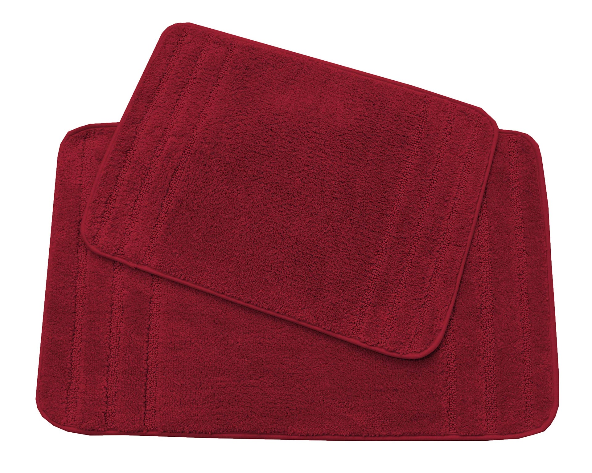 - All American Collection Rectangular Non Slip Plush Shaggy Water Absorbent Accent Rug Bathroom Bathtub Microfiber 2 PC Bath Mat Set (Burgundy)