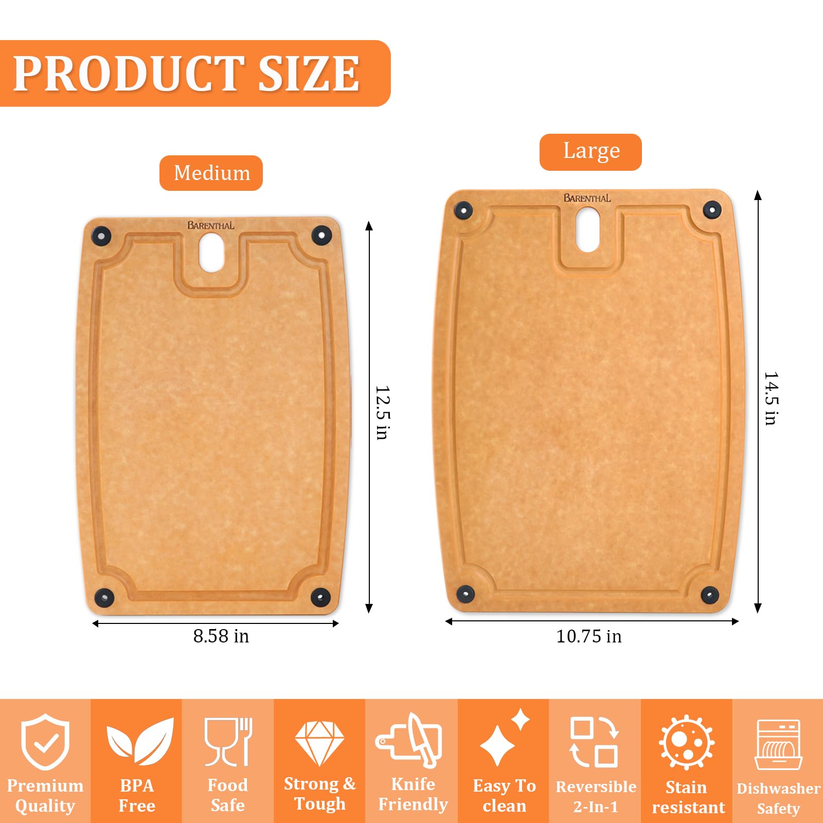 - Barenthal Cutting Boards for Kitchen Dishwasher - 2PC Cutting Board Set Double-Sided with Non-Slip Feet and Juice Groove Composite Chopping Boardโฆ