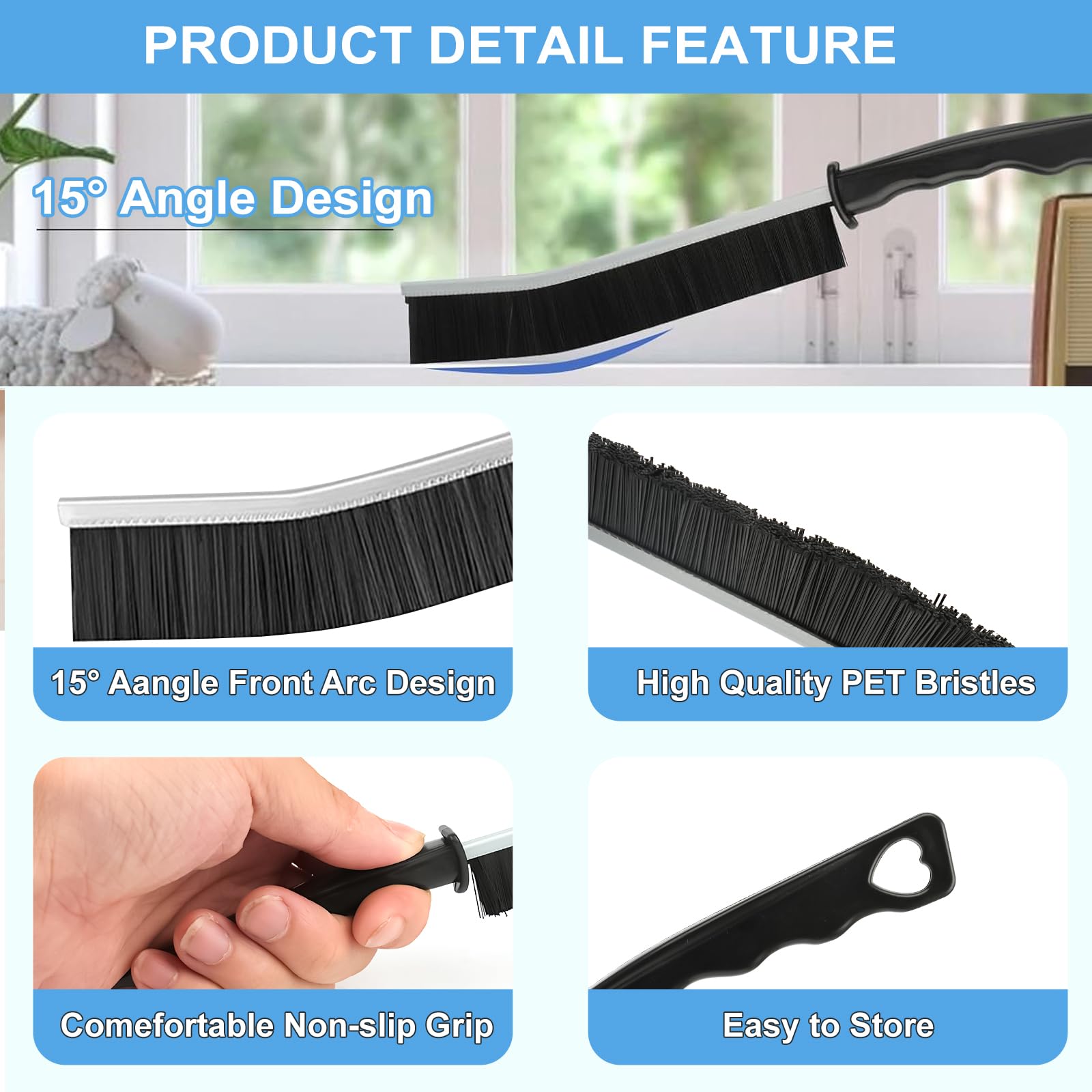 - 【Ergonomic Design】 The handles of the brush and scraper are ergonomically designed, providing a comfortable grip when used. The angle design of the bristles and scraper makes cleaning more convenient, efficient and labor-saving. All tools have hanging spaces at the tail for easy storage.