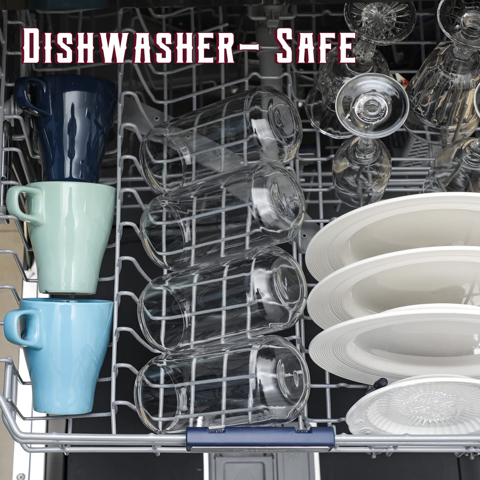 - DURABLE and SAFE: The glasses are made of high-quality durable clear glass, Lead-free and BPA-free. It can be used safely for a long time. This thick clear glass can withstand the sudden changes in the temperature difference between -68°F to 212°F, making them dishwasher safe. If you want to decorate this glass, you can do DIY easily without breakage