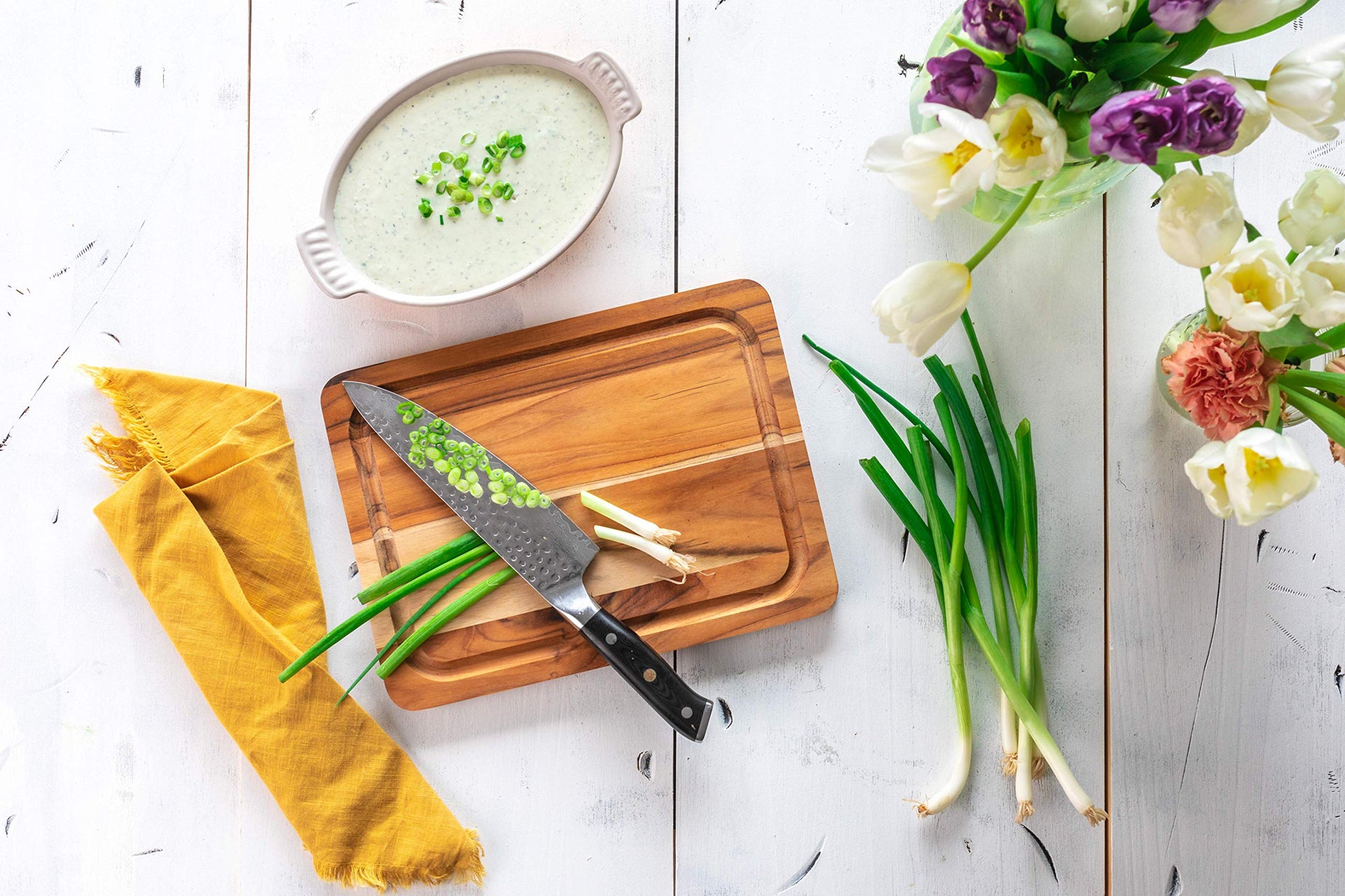 Lipper International provides exceptionally valued items for the kitchen, home, office, and child's playroom. Known for their functionality and beauty, each of our products is individually crafted from the finest quality materials. This cutting board is made from durable and sustainably grown Teak in Brazil. The impressive grain and natural golden coloration enhances the decor of any kitchen. Hand wash with a mild soap and cool water. Do not soak. Do not put in the dishwasher, microwave or refrigerator. Extreme changes in temperature will cause the material to crack over time. Dry thoroughly. Occasional use of mineral oil will help maintain its appearance.