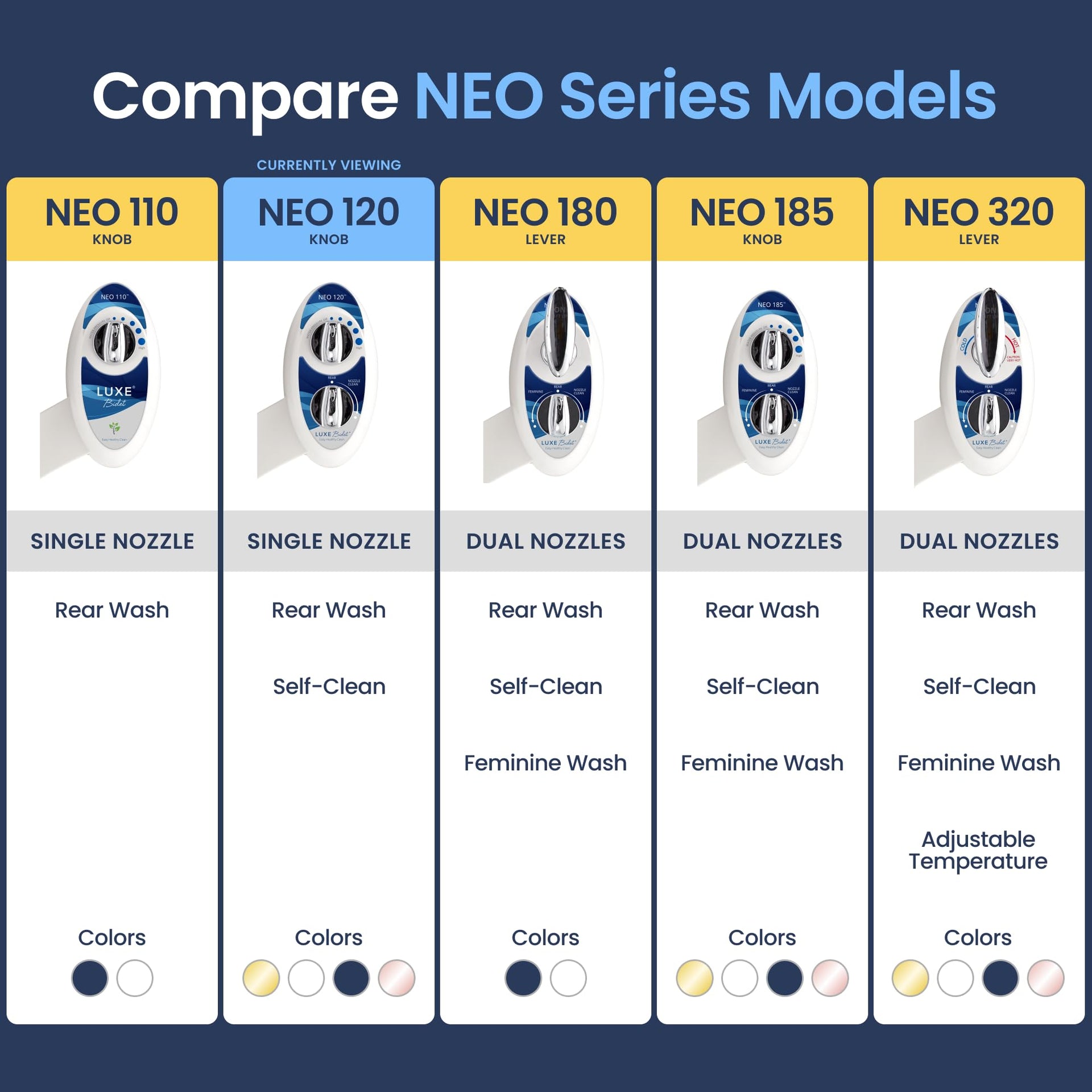 - LUXE Bidet NEO 120 - Self-Cleaning Nozzle, Fresh Water Non-Electric Bidet Attachment for Toilet Seat, Adjustable Water Pressure, Rear Wash (Blue)