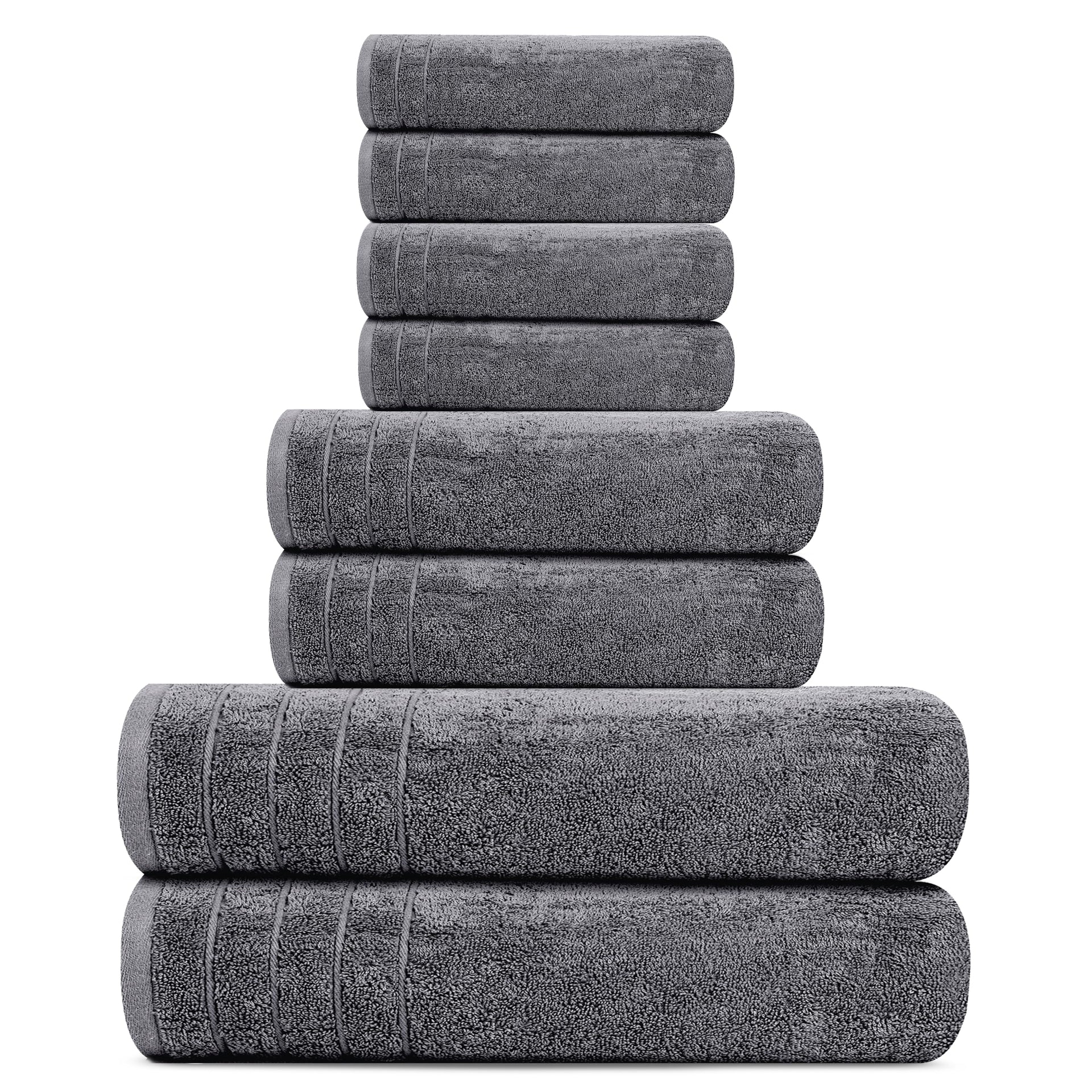 - Tens Towels 8-Piece Set, 2 XL Bath, 2 Hand & 4 Washcloths, 100% Cotton, Lightweight, Quick Dry & Super Absorbent for Bathroom, Dark Grey