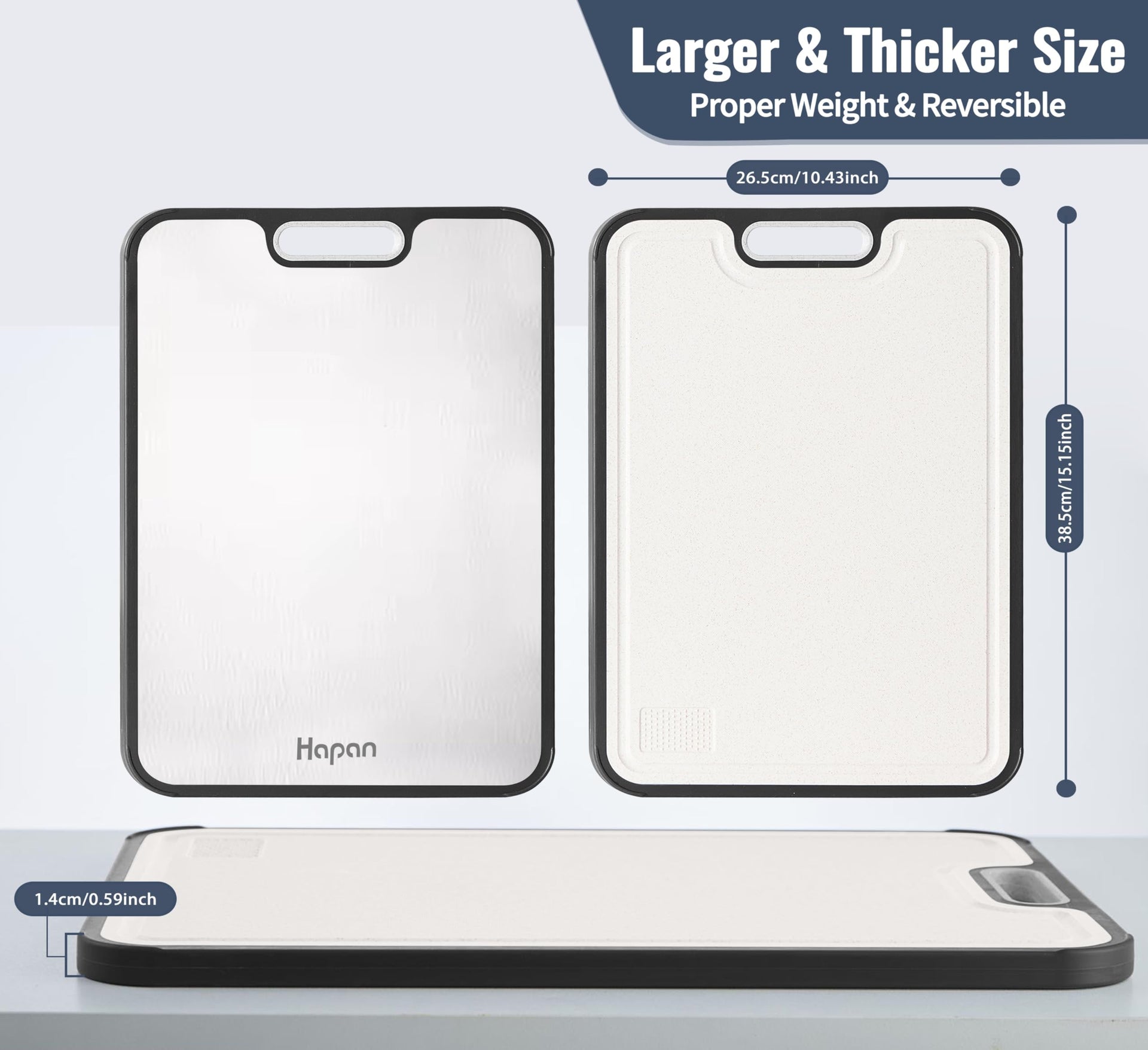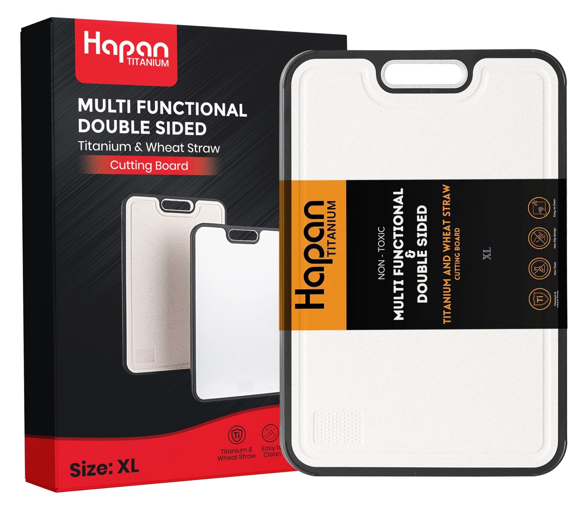 Hapan Titanium Double-Sided Cutting Board - Premium Kitchen Essential Elevate your kitchen experience with the Hapan Titanium Cutting Board, crafted for those who value durability, versatility, and health-conscious materials. With a generous surface, this large cutting board offers plenty of room for all your chopping needs, from delicate fruits and vegetables to hearty meats and tough foods. Designed with double-sided functionality, the GR1 titanium side is perfect for heavy-duty tasks like slicing meat and chopping hard foods, while the Wheat Straw PP side ensures a gentle surface ideal for cutting fruits and veggies. Whether you're preparing a gourmet meal or a simple salad, this cutting board can handle it all with ease. Made from non-toxic, health-conscious materials, this cutting board guarantees that your food remains free from harmful chemicals, ensuring a safe and eco-friendly experience. The smooth metal surface is a breeze to clean-simply wipe it down or rinse it off for quick, hassle-free maintenance. Additionally, the non-slip base provides stability, keeping the board securely in place during use and preventing messes from slipping. Despite its large size, the Hapan Cutting Board is lightweight and portable, offering long-lasting durability with everyday use. This makes it perfect not only for your home kitchen but also for outdoor cooking and camping adventures. Looking for the perfect gift? The Hapan Titanium Cutting Board is an ideal choice for any occasion-whether it’s Christmas, Thanksgiving, a housewarming, or a special celebration. Its sleek design and exceptional functionality make it a standout addition to any kitchen, sure to impress family and friends.
