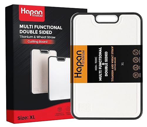 • 【𝐇𝐚𝐩𝐚𝐧 𝐓𝐢𝐭𝐚𝐧𝐢𝐮𝐦 𝐂𝐮𝐭𝐭𝐢𝐧𝐠 𝐁𝐨𝐚𝐫𝐝𝐬 𝐟𝐨𝐫 𝐊𝐢𝐭𝐜𝐡𝐞𝐧】: Introducing our premium Double Sided Titanium and Wheat Straw Cutting Board - the perfect combination of durability and versatility. This large titanium cutting board offering ample space for all your chopping needs.