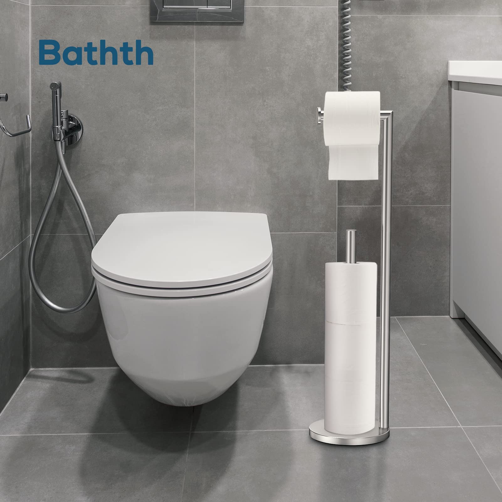 - Toilet Paper Holder Stand, Toilet Paper Stand Brushed Nickel, Free Standing Toilet Paper Holder, Toilet Paper Storage by Bathth