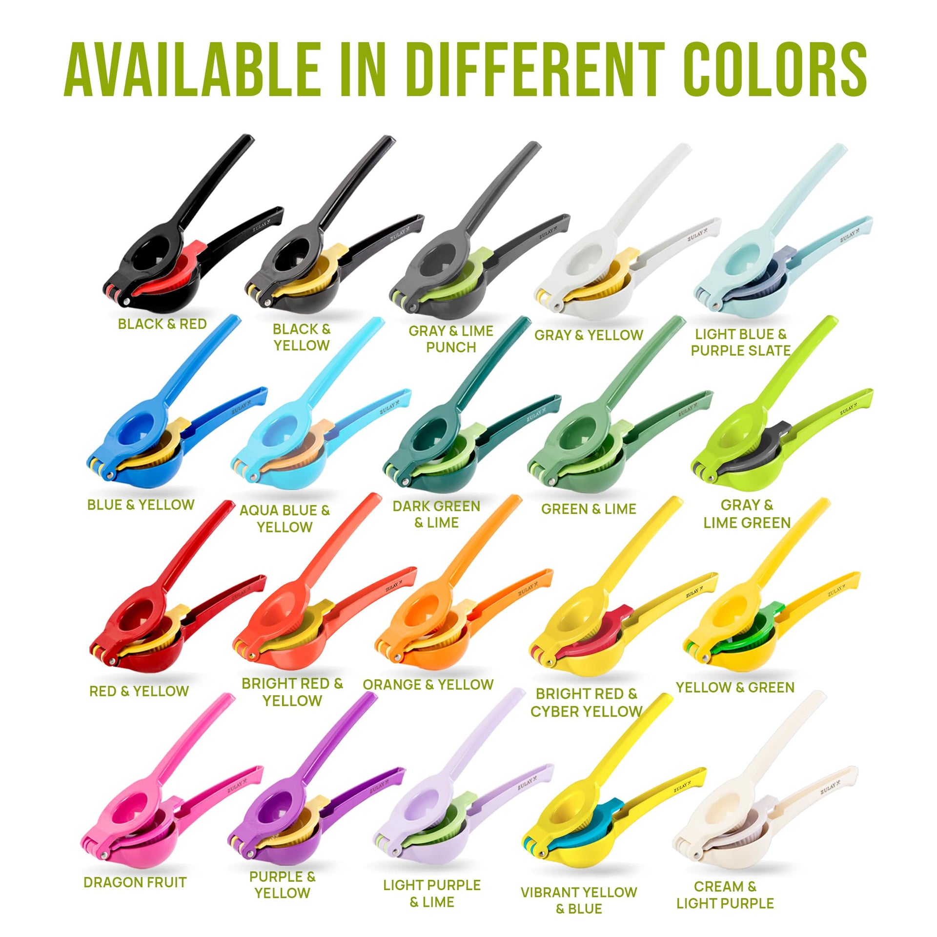 - Zulay Kitchen 2-in-1 Lemon Squeezer – Heavy-Duty Hand Juicer for Max Extraction, Easy-Clean Manual Citrus Press, Yellow/Green