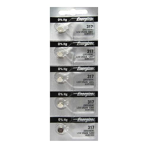 Energizer 317 Button Cell Silver Oxide SR516SW Watch Battery Pack of 5 Batteries