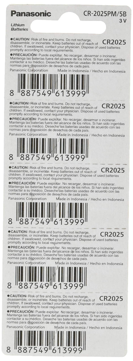 Panasonic CR2025-5 CR2025 3V Lithium Coin Battery (Pack of 5)