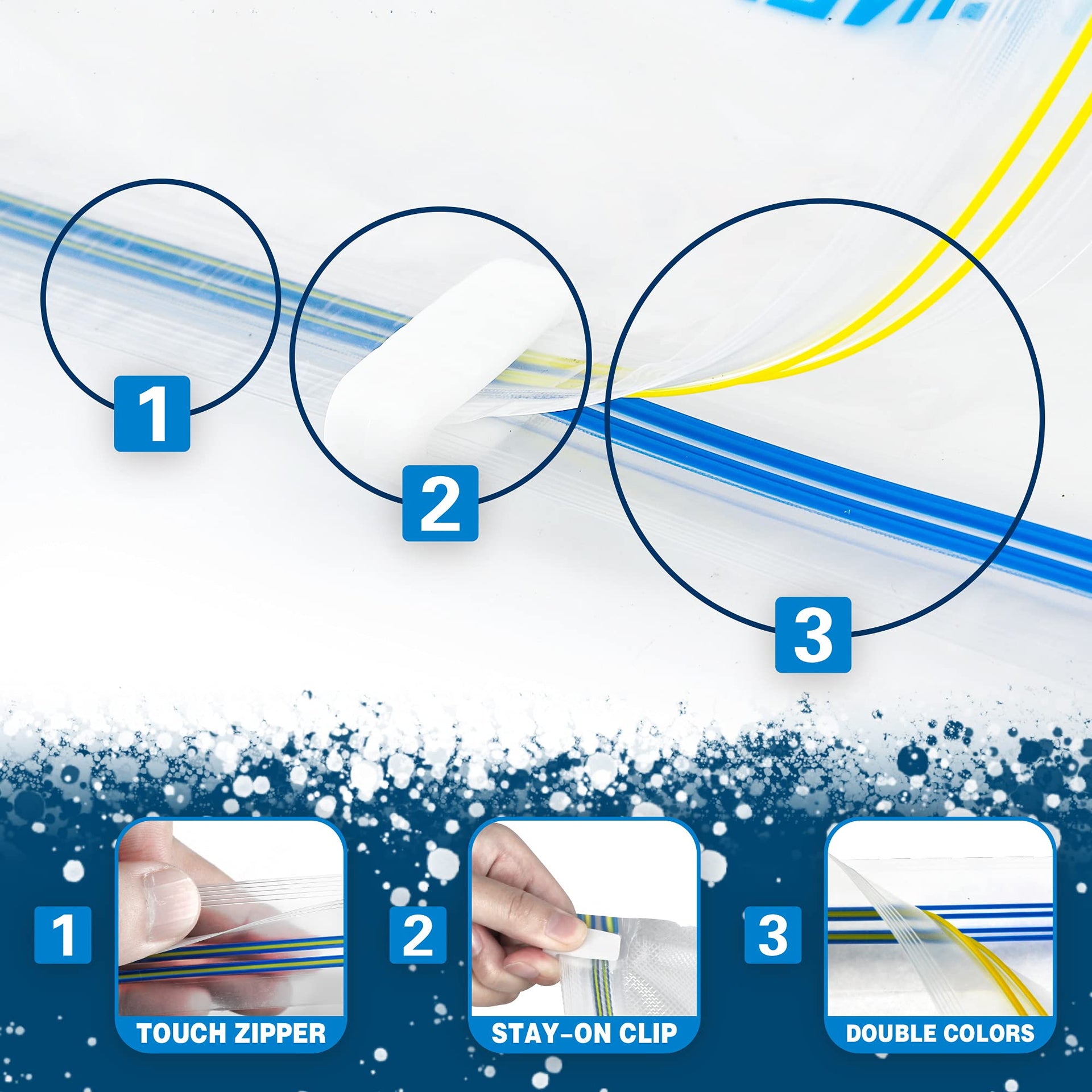 - Travel Accessories: the unique Double-Zip design has separated yellow and blue lines on each sides. Better visualize full sealing of the zipper closure.