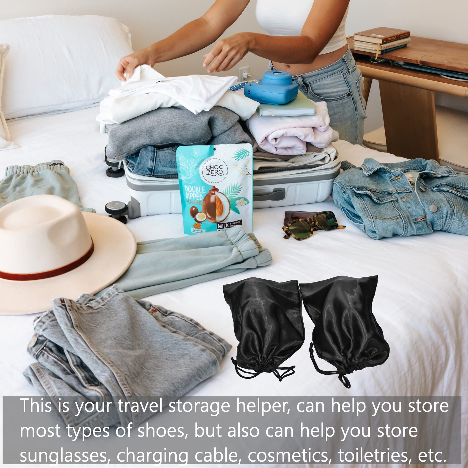 2. Bag for shoes travel with Drawstring are not just great for protecting shoes, they are the perfect travel storage bags. Save luggage space and makes packing simple and easy.