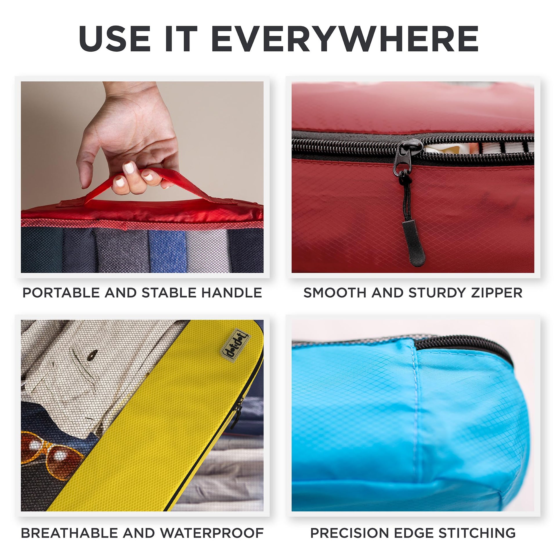 - Saves You Time and Maximizes Luggage Space - Unpacking can be as easy as placing your reusable and durable travel bag organizer into the hotel drawer. Each suitcase organizer compresses the clothes so you are able to pack more clothes in less space.