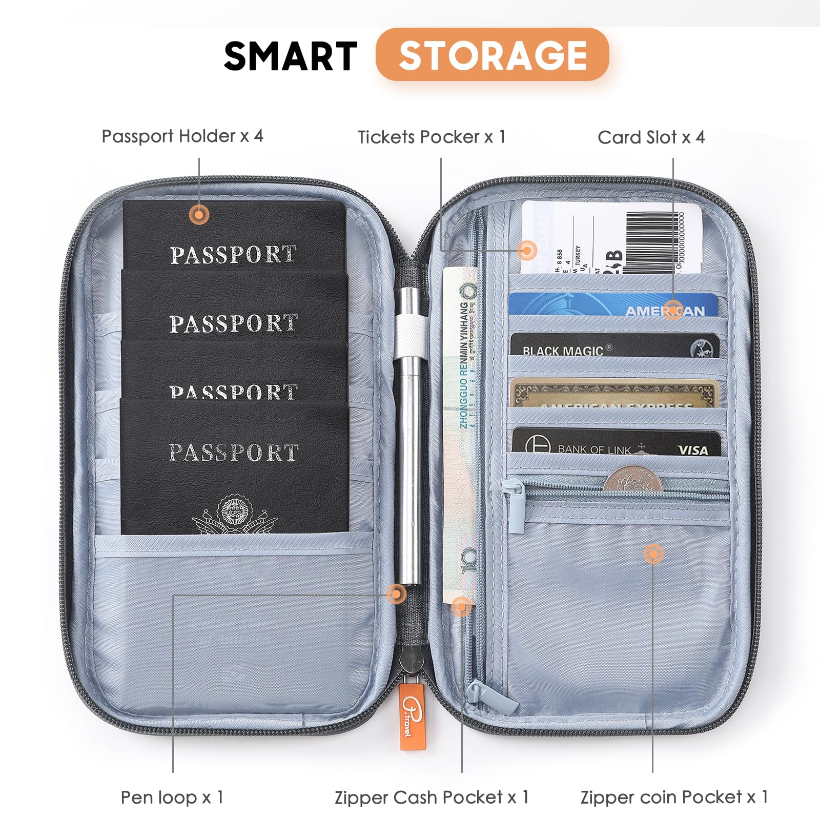 - PERFECT SIZE FAMILY PASSPORT HOLDER - Size: (5in×9in×0.78in), Family travel document organizer stores money, up to 6 passports, tickets, 4-10+ cards & travel documents. It is a perfect size for family travelling.