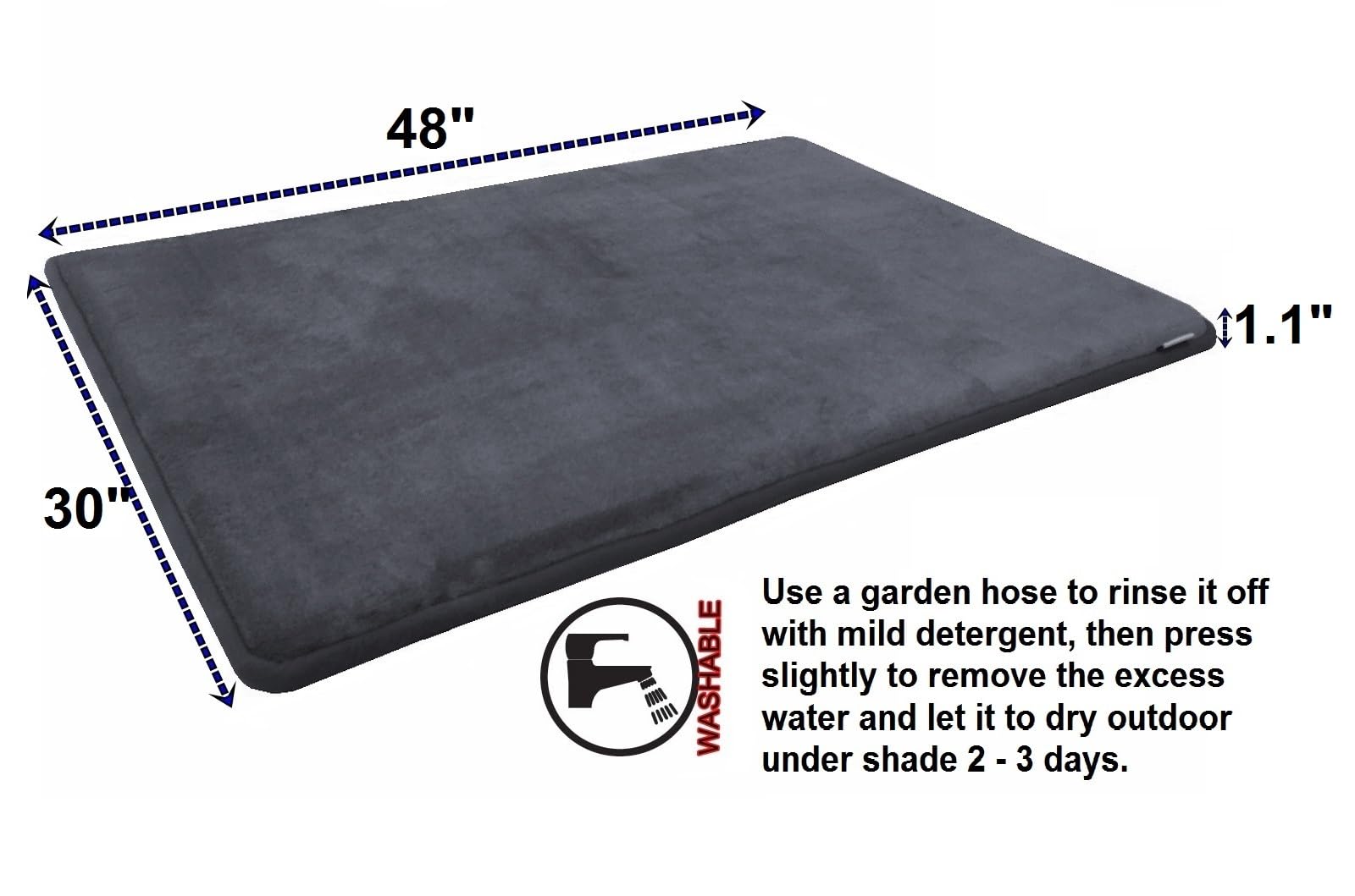 48''x30'' MicroPlush Fleece Gray Comfort Luxurious Memory Foam Waterproof Anti Slip Mat Pad Rug for Home, Kitchen, Bathroom, Bedroom, Pets, Activities
