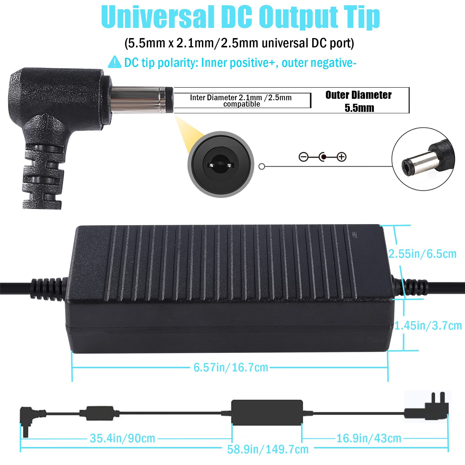 • 12V10A Power Supply,Input AC 100-240V 50/60Hz. Output: DC 12V, 10A 120W max, 5.5mm x 2.1/2.5mm Jack,Please confirm this DC jack's size is suitable for your device before purchase