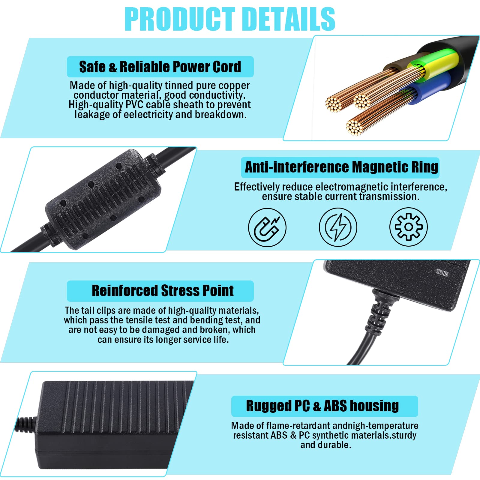• Plug and play,no hardwiring or electrician experience required,Over-voltage protection, over-current protection, short-circuit protection,provide a stable current,safely to use