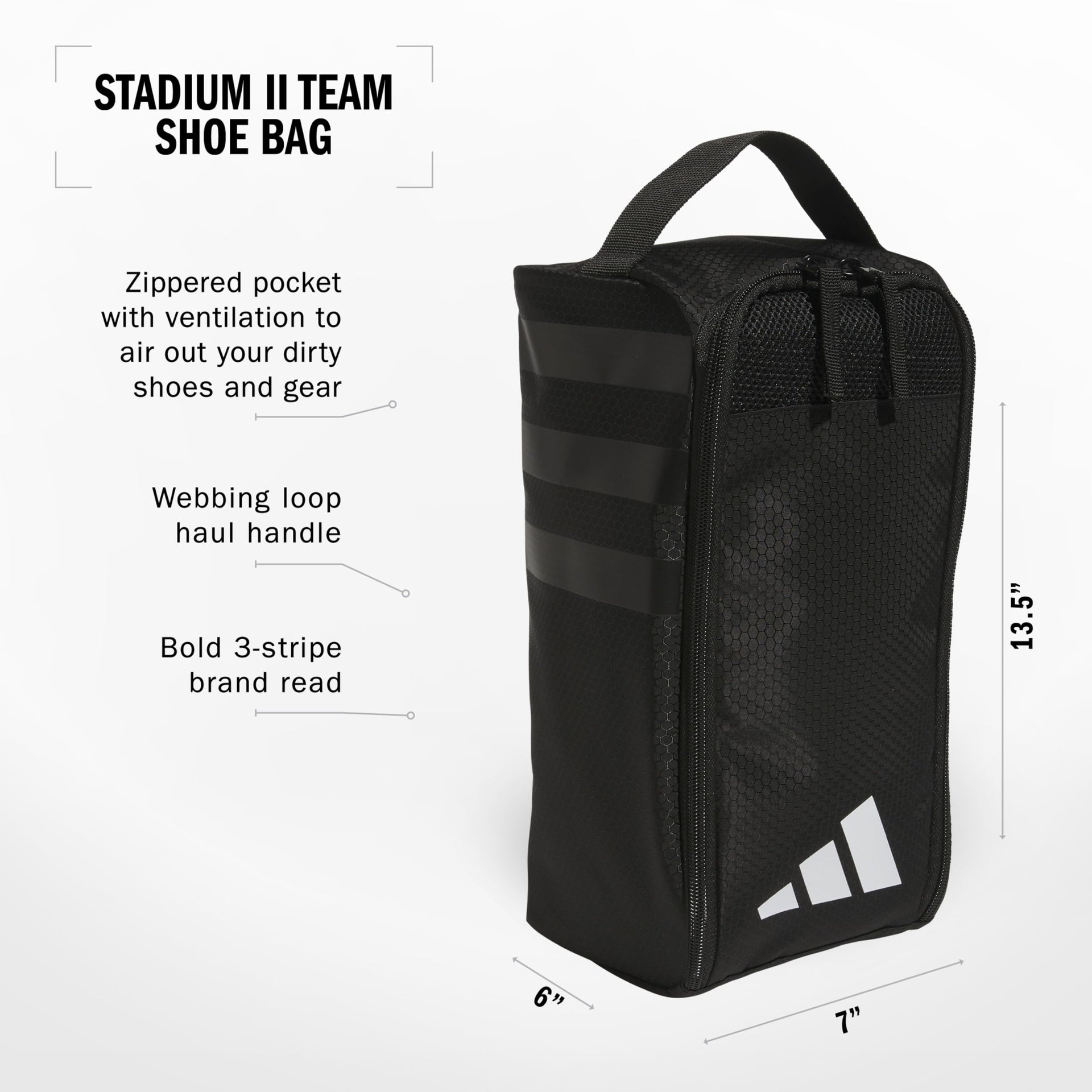 This handy adidas shoe bag gives you a dedicated spot to stash dirty cleats or shoes after practice or play. It zips open and shut for convenience and is ventilated to air out gear. It's lightweight and compact and tucks right into your larger bag.