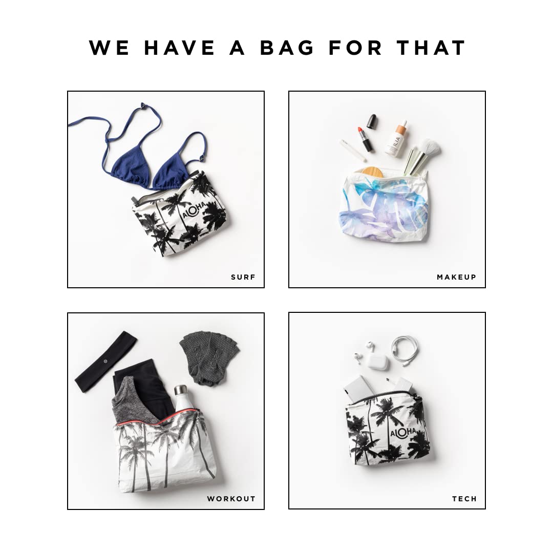 ALOHA Collection Small Pinstripe Pouch – Lightweight, Packable, Splash-Proof Makeup Bag, Easy to Clean