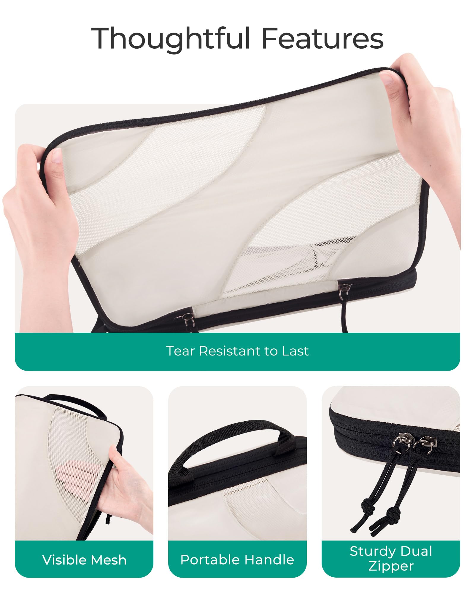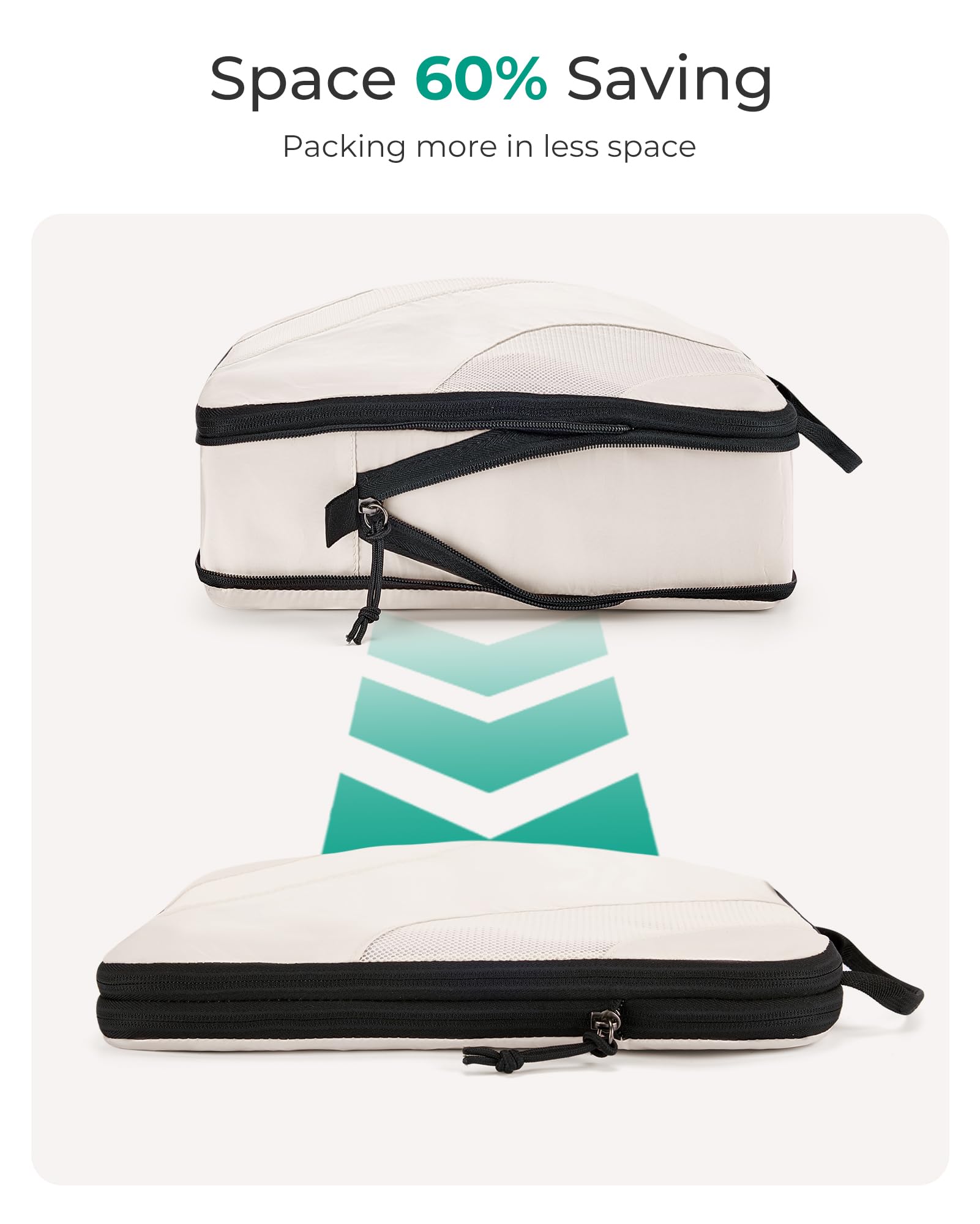 BAGSMART Compression Packing Cubes 6 Set – Lightweight Travel Suitcase Organizers Bag Set for Luggage, White Opal