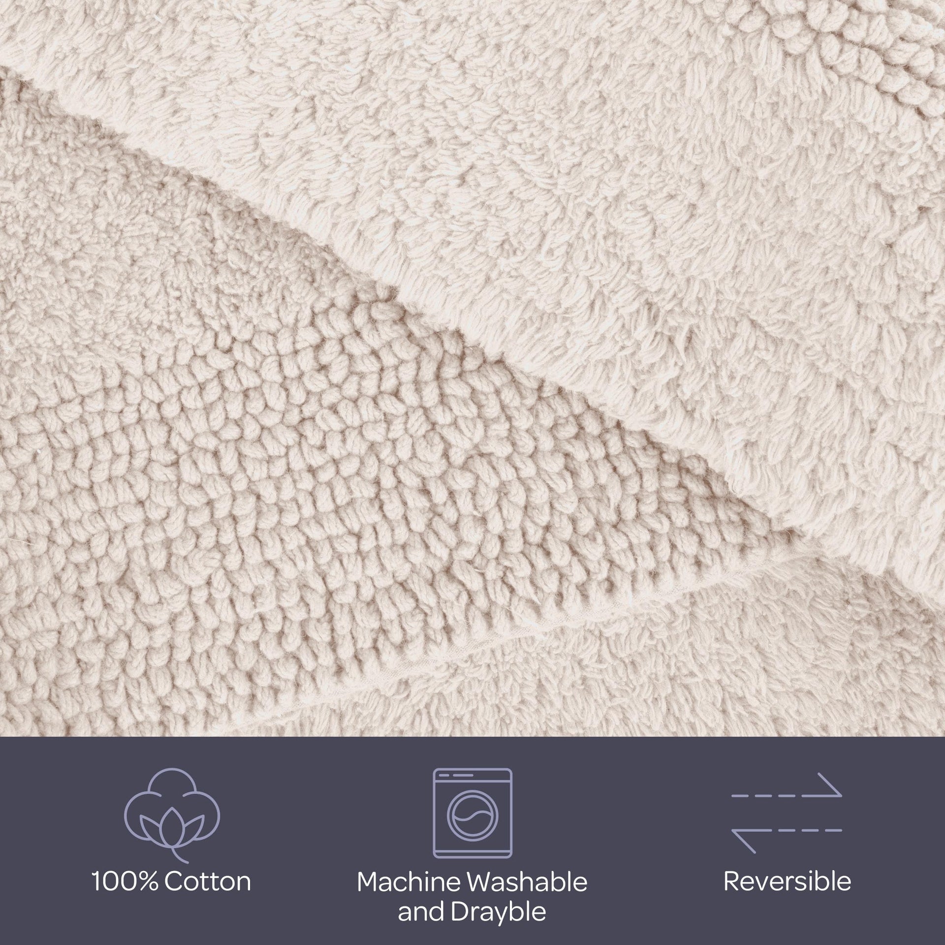 • COMFORTABLE AND REVERSIBLE - These bath mats gives you a dry and cozy place to stand while you get ready to start your day. Each bath rug is fully reversible with a soft cotton material on both sides offering plush comfort for your feet.