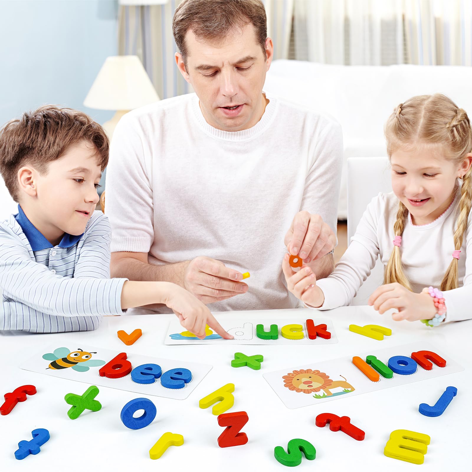 BEESTECH Alphabet Learning Toys – Wooden Puzzle Flash Cards & Letter Matching Games, Fun Educational Activity for Toddlers & Preschool Kids Ages 2–5