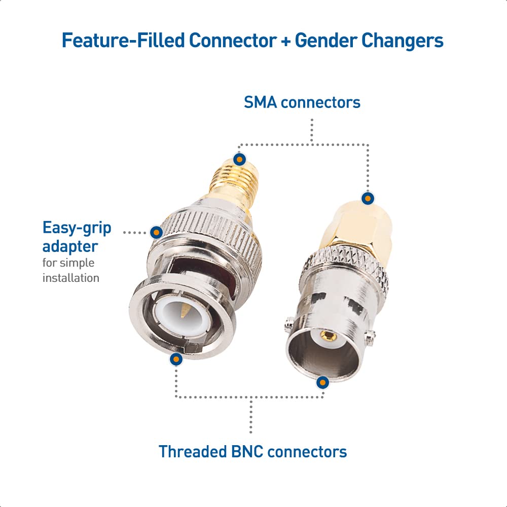 • The 4-pack of adapters includes gender and connector changers for BNC and SMA