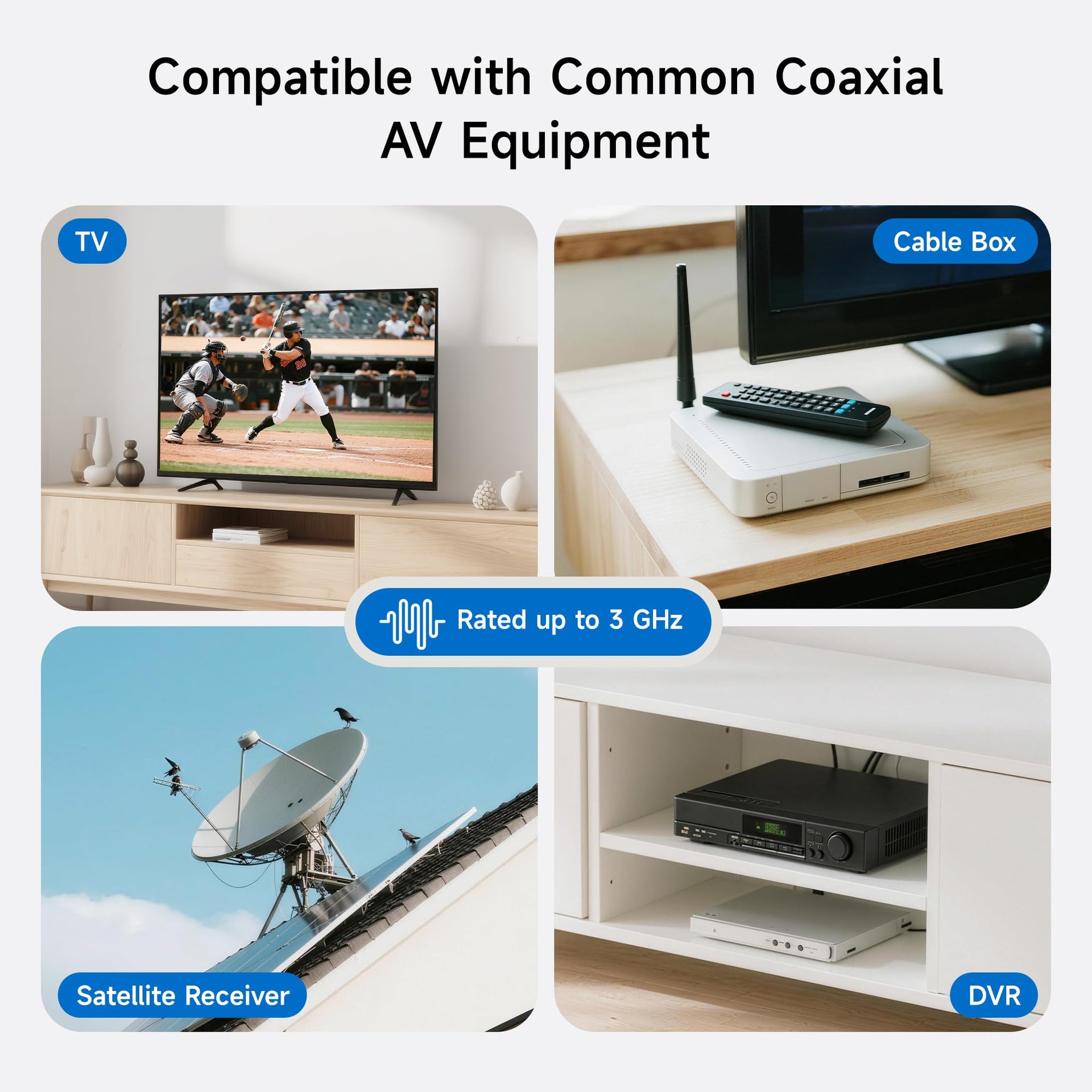 • Gold-plated RG6 connectors are rated up to 3 GHz for UHD video streaming applications