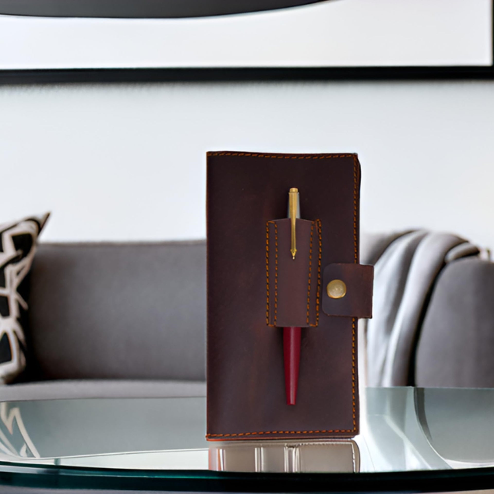CestAntiQ Distressed Leather Checkbook Cover with Pen Holder - Handmade Executive Checkbook Wallet for Men, Women, Slim and Stylish Organizer (Brown)