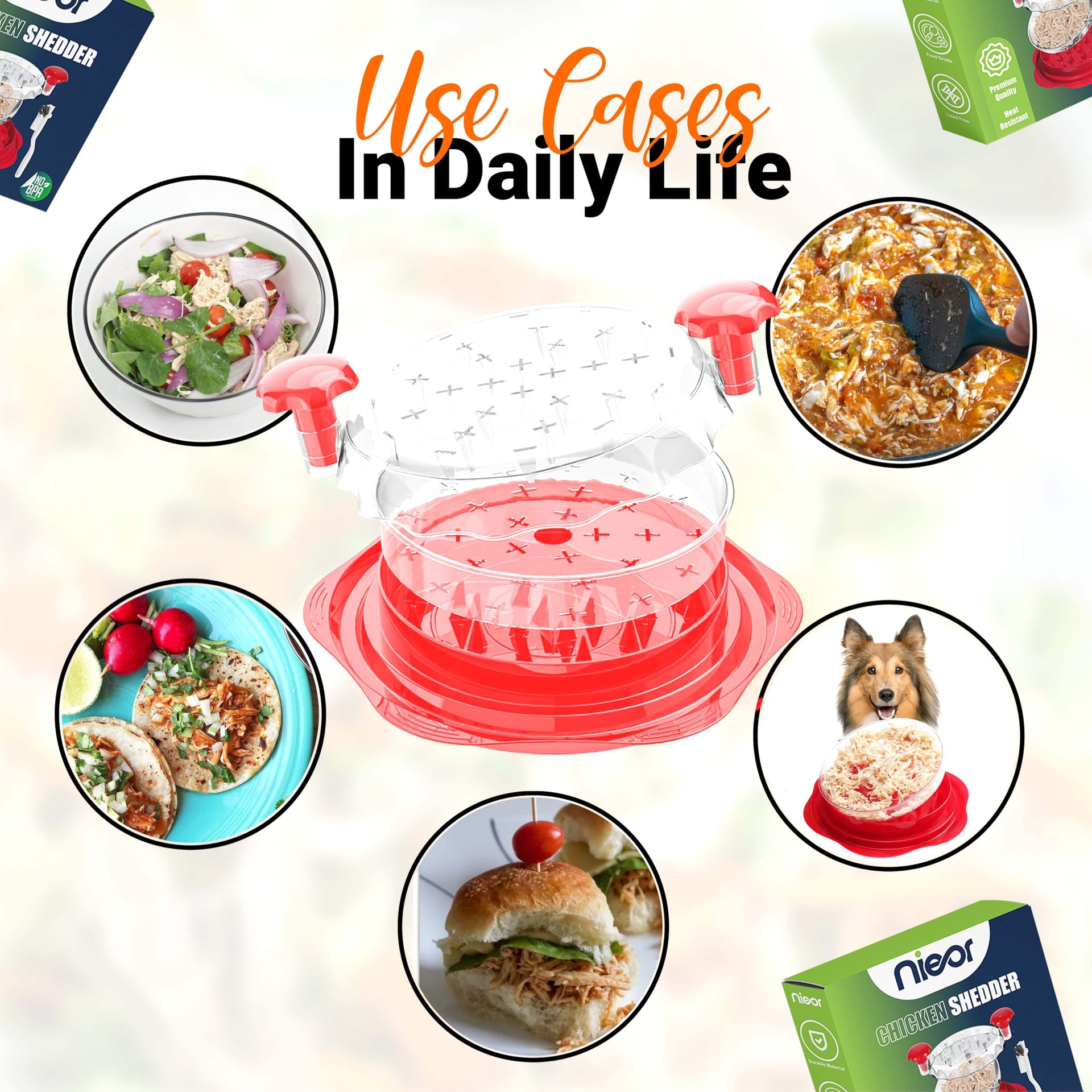 - Fast 3-Layer Shredding System: Upgraded triple-spike design delivers fast, even shredding of cooked chicken, pork, or beef. Includes a clear middle plate for easy meat removal. No slipping, no mess—just quick, consistent shredding in seconds.