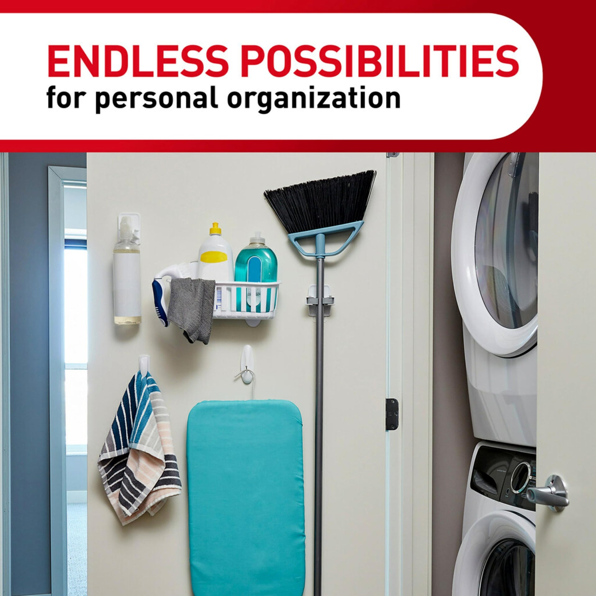 Command Broom & Mop Grippers, 2 Hangers with 4 Strips, Damage-Free Wall Mount Holder for Cleaning Tools, Organizing & Storage, Holds up to 4lb