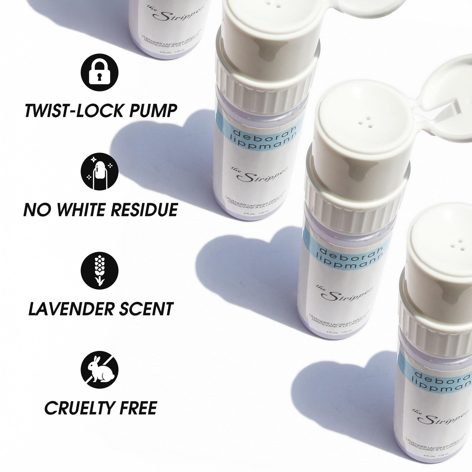 - NATURAL LAVENDER SCENT: The Stripper is lavender scented and formulated to remove the toughest nail polish including shellac polish, regular nail polish, & gel polishes. It comes with a unique twist-lock pump to prevent leaks and spills.