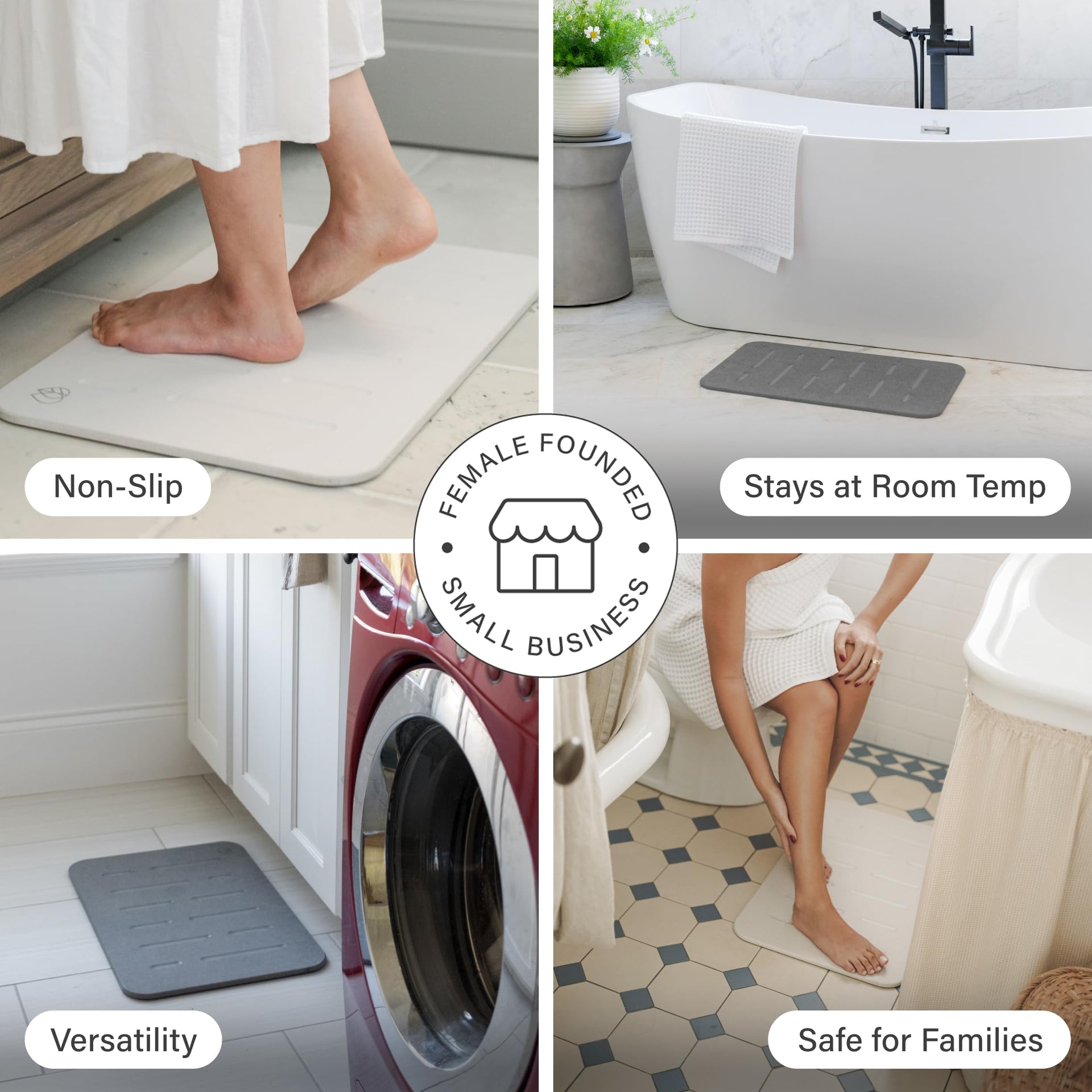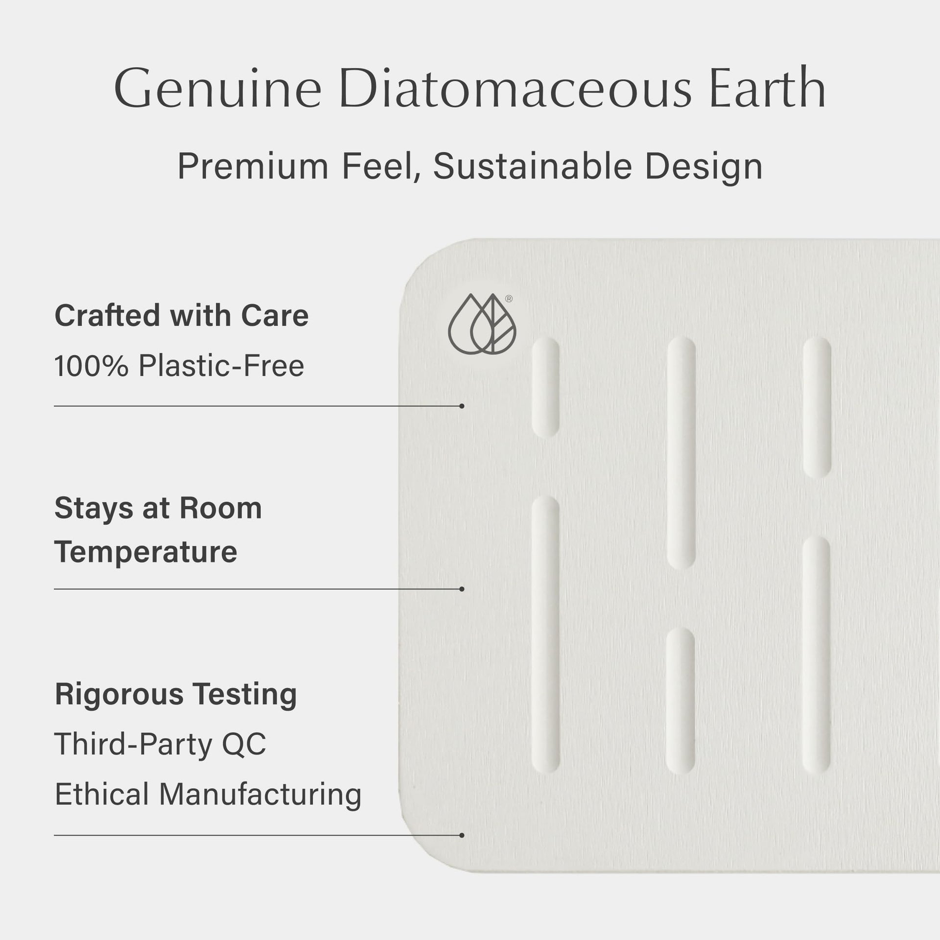 • QUICK-DRYING DIATOMACEOUS EARTH: Our Diatomaceous Earth Stone Bath Mat absorbs up to 150% of its weight in moisture that evaporates within seconds. This ceramic-like material feels like natural stone, offering a hygienic and durable alternative to traditional bath mats.