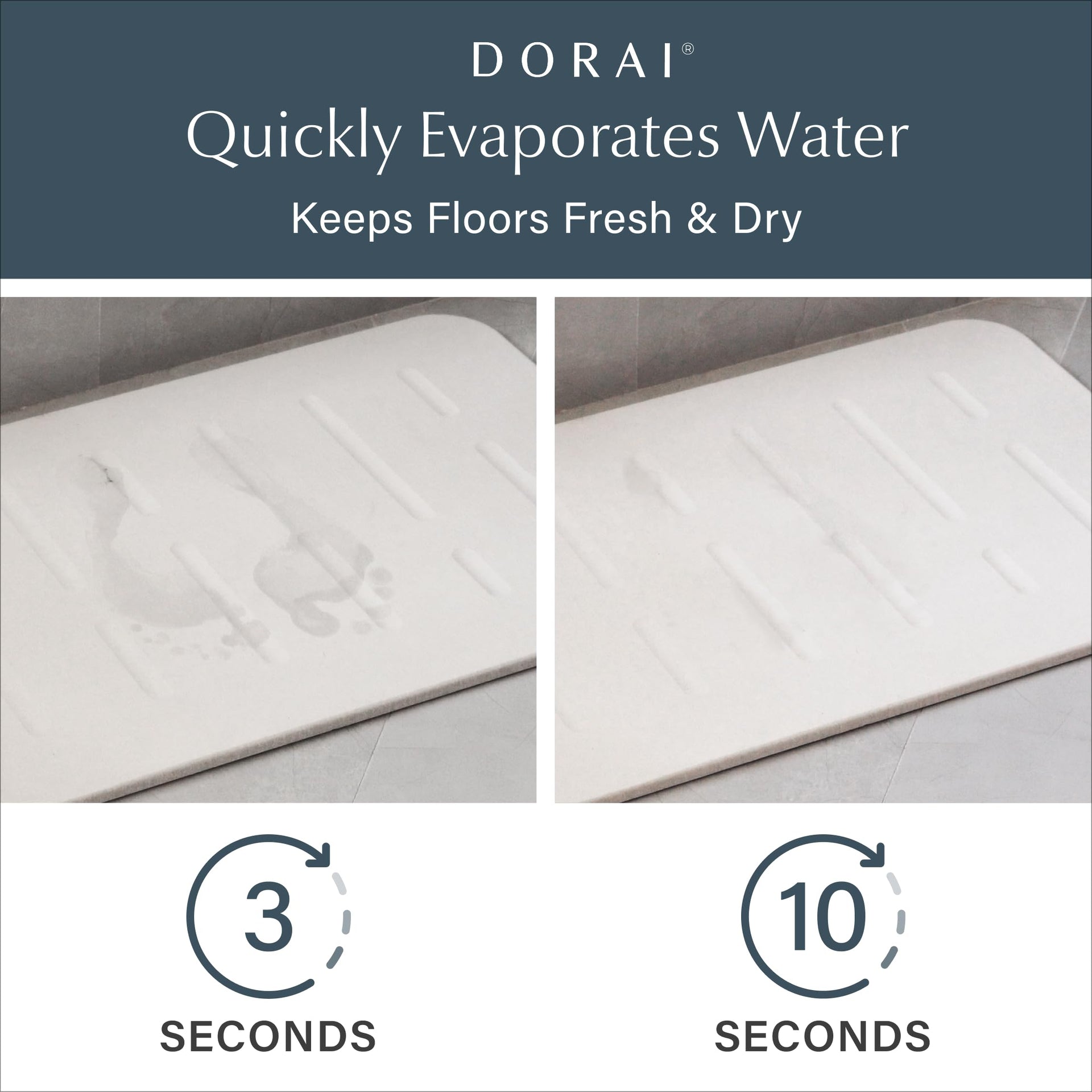 Meet the Dorai Home Bath Stone Mat: Unlike traditional bath mats and rugs, our bath stone mat is engineered to whisk away moisture quickly, leaving your floors dry and your feet feeling fresh. Crafted from compressed diatomaceous earth and recycled paper, our bathroom mat is as earth-friendly as it is effective. With the Dorai Bath Stone, you can enjoy a dry, comfortable, hygienic experience every time you step out of the shower or bath! Discover the Benefits of the Original Bath Stone: Quick Drying: No more waiting around for your bath mat to dry. Our mat dries almost instantly, keeping your bathroom fresh and dry. Non-Slip Rubberized Bottom Pad: Stay safe and secure with our non-slip bottom pad, ensuring stability on any surface. Flat Lay Technology: Our mat won't bow or bend, maintaining its pristine appearance over time. Natural Stone Feel: Enjoy the luxurious feel of natural stone underfoot, with the added benefit of adjusting to the room's temperature. Durable & Long-Lasting: Built to withstand daily use, our mat is designed to last for years to come. Female-Founded & Designed in the USA: Experience the difference with the Dorai Home Bath Stone - where innovation meets eco-chic luxury. Dimensions - Length: 23.6" Width: 15.4" Height: 0.4" About Dorai: Dorai was born from the belief that you shouldn't have to sacrifice functionality or style when it comes to home essentials. At Dorai, we created the best of both worlds, combining chic, sophisticated designs with sustainable, eco-chic materials. Dorai products are made from Diomat technology, which combines the moisture-banishing properties of diatomaceous earth with recycled paper fibers. Created by designers and problem solvers with an aversion to dirty environments, Dorai helps homes stay cleaner with safe, stylish solutions.