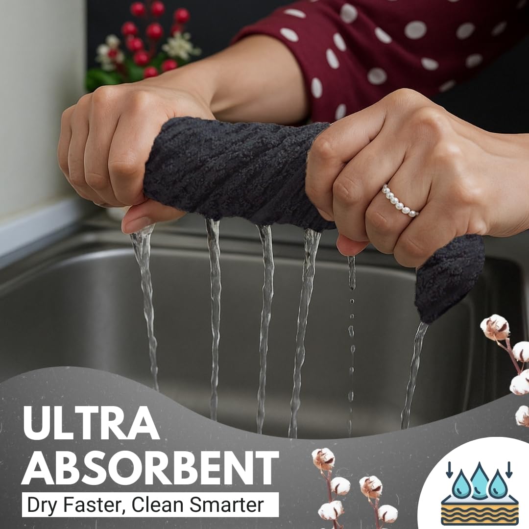 Infinitee Xclusives 100% Cotton Kitchen Towels – 15x25” Ultra Soft, Super Absorbent Terry Dish Towels, Grey