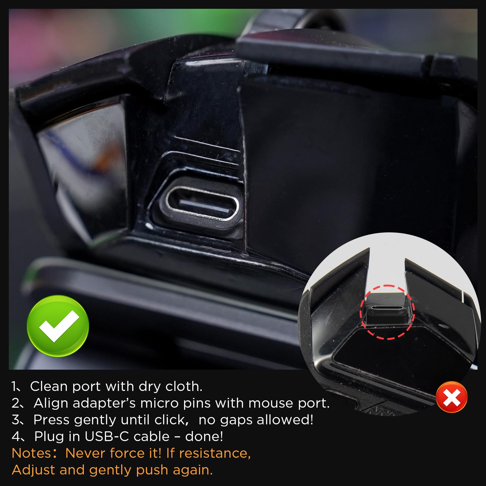 • **🛠️ 3-SECOND MAGIC - Don’t force it! Align micro pins → gentle push till click. No tools, no rage! Must fully insert! Ensure the adapter is flush with the mouse body (see image 3). Partial insertion may cause charging issues.