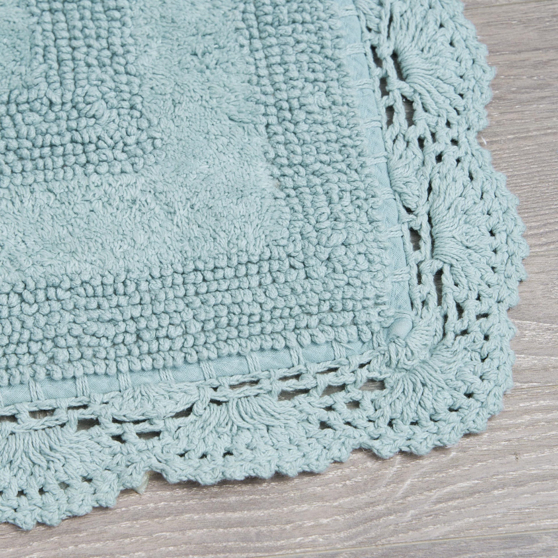Classically chic, Laura Ashley Crochet Bath Rug Collection features 100% natural cotton rugs in an assortment of rich, saturated colors. Durable cut-and-loop fibers, woven with a lovely crochet border, are reversible for long-lasting use. Available in white, ivory, aqua blue, linen, light grey, indigo, and blush pink. Size options are perfect for any bathroom, bedroom or living area. Backing is 100% cotton - rug pad recommended and sold separately. Includes (1) 17" x 24" bath rug. Machine wash cold separately with mild detergent. Do not bleach. For best results, hang dry. Imported.