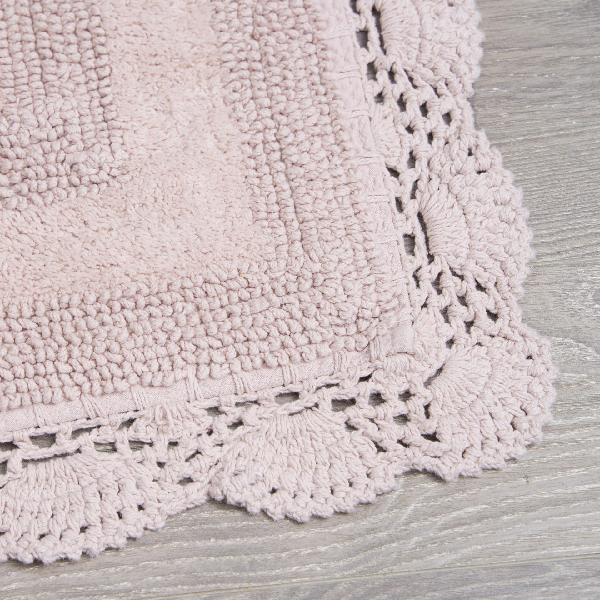 • CLASSICALLY CHIC CROCHET MAT - Elegant Laura Ashley style features plush cut-and-loop fibers woven with a chic crochet border that is designed to sit perfectly besides your tub, shower, toilet or sink and provides dry spot to stand on.