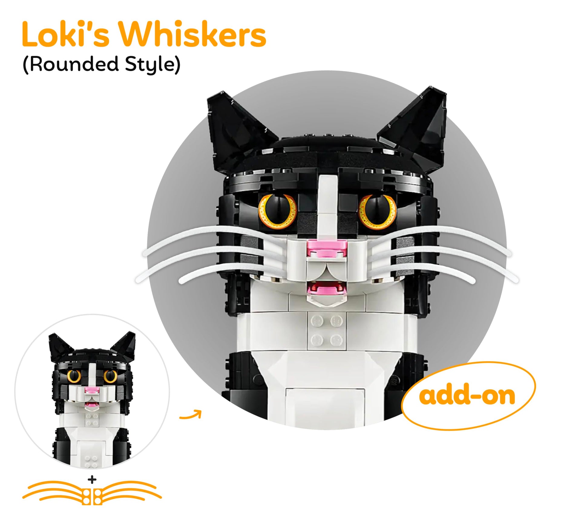 Loki's Whiskers for Lego Ideas 21349 Tuxedo Cat – 6-Pack Snap-In Whisker Accessory (3 Sets), Compatible with 21349, Cat Not Included