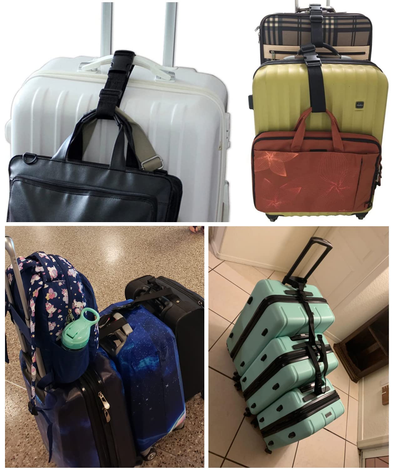 - GOOD QUALITY MATERIALS - This lightweight luggage straps are made of heavy-duty plastics and polyester webbing material and buckle closure ensures security, the belt can be adjustable. Luggage accessories for travel use buckle straps design and easy to closure and easy to change length. It does not snap when bent inwards or outward