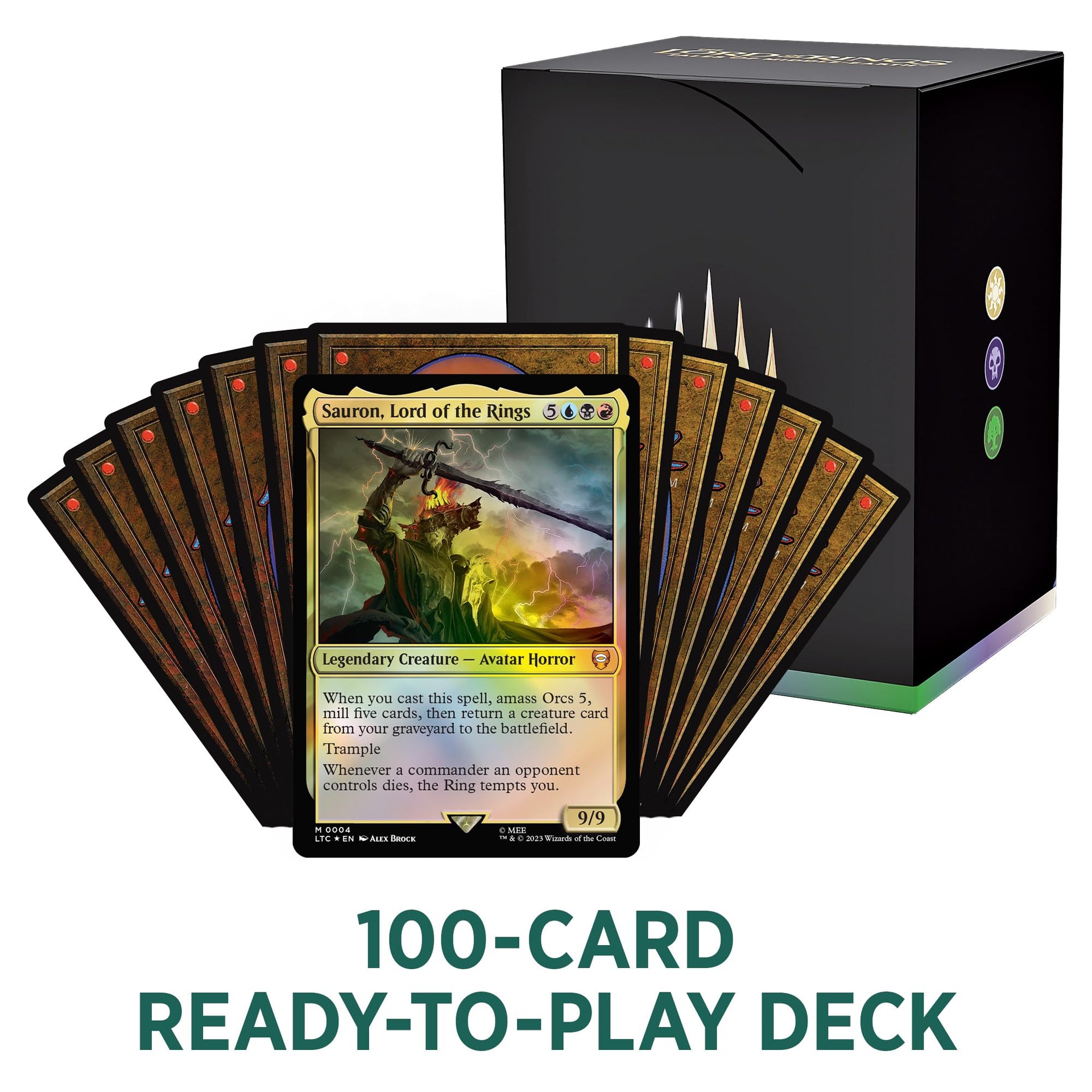 • THE HOSTS OF MORDOR-Join the hosts of Mordor with a 100-card Blue-Black-Red deck containing 2 Foil Legendary Creature cards and 98 nonfoil cards