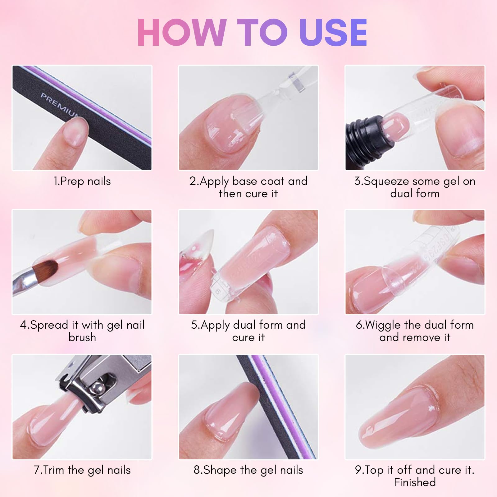 - Practical Gel Nail Builder for Nails-- It is better to dip the brush into slip solution or 70% isopropyl alcohol(not included in this gel nail kit), which can help you use or spread the poly nail extension gel easily. Hard gel for nails can be picked and pushed on nail dual forms smoothly. This professional nail kit is a great choice for both beginners and professional nail specialists