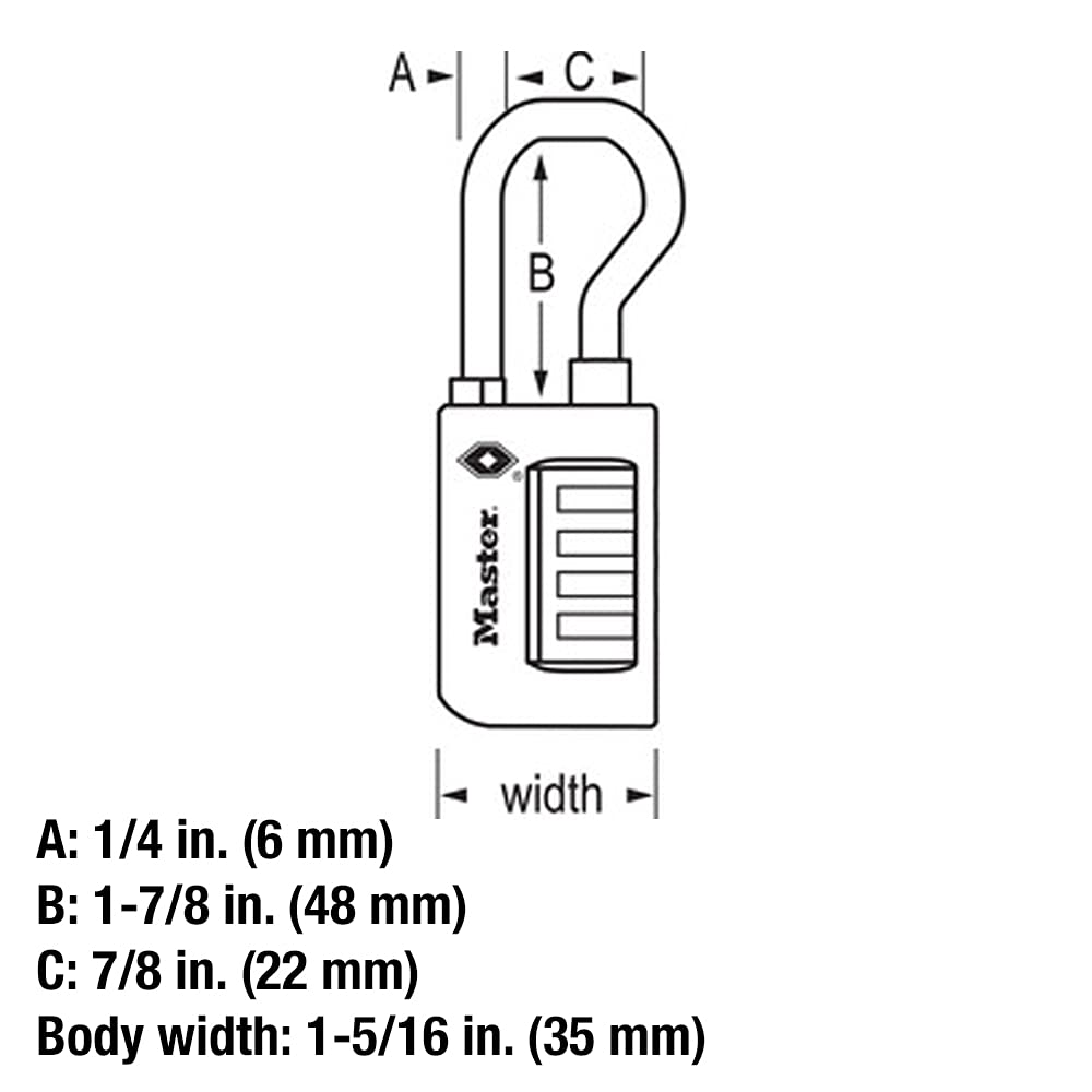 Details: The Master Lock 4696T Set Your Own Combination TSA-Approved Luggage Lock features a 1-5/16 in. (35 mm) wide metal body for durability. The 1/4 in. (6 mm) diameter shackle is 1-7/8 in. (48 mm) long, offers extended reach for use on equipment cases and is made of steel, offering resistance to cutting and sawing. Transportation Security Administration (TSA) screeners can open, inspect and relock bags and cases locked with a TSA-Accepted lock. Lock your checked baggage with the lock TSA screeners won’t cut! The Lifetime Guarantee provides peace of mind from a brand you know and can trust.