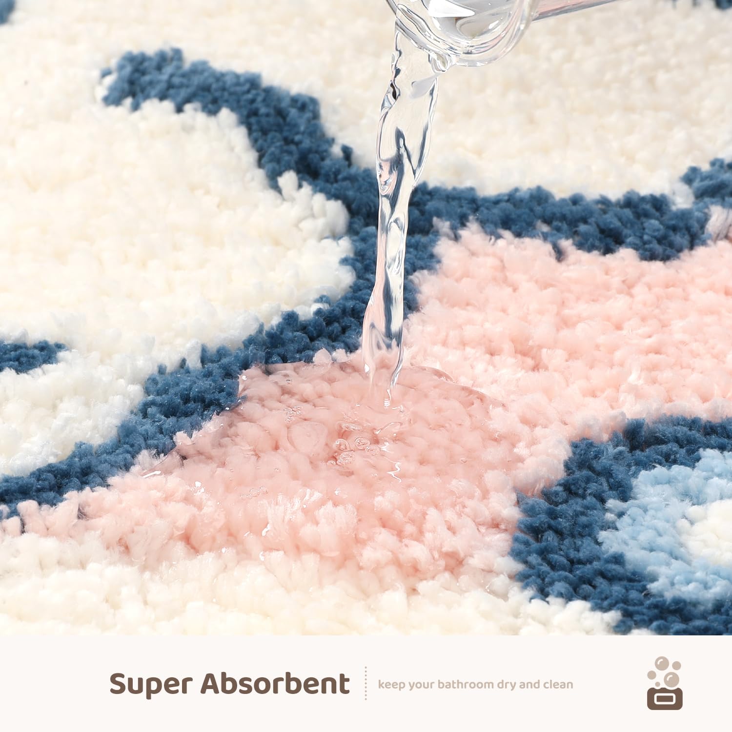 • SUPER ABSORBENT: Constructed of high grade microfiber materials, this cute bath rug can absorb water in few seconds to dry your feet quickly and make your bathroom floors dry and clean