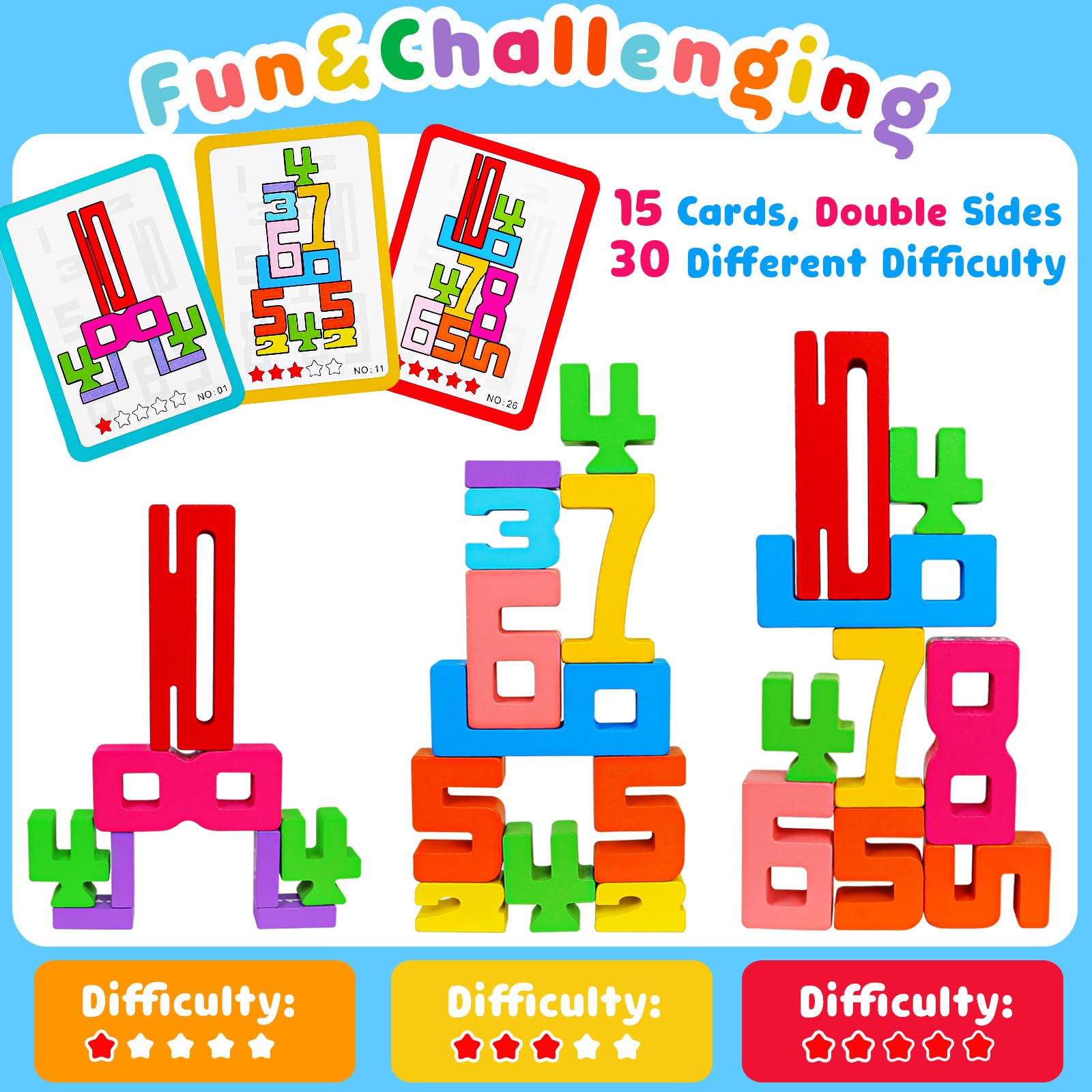 Montessori Wooden Number Blocks 1-10 – Stacking Math Learning Toys for Toddlers & Kids Ages 3-5, Educational Balance Game Gift