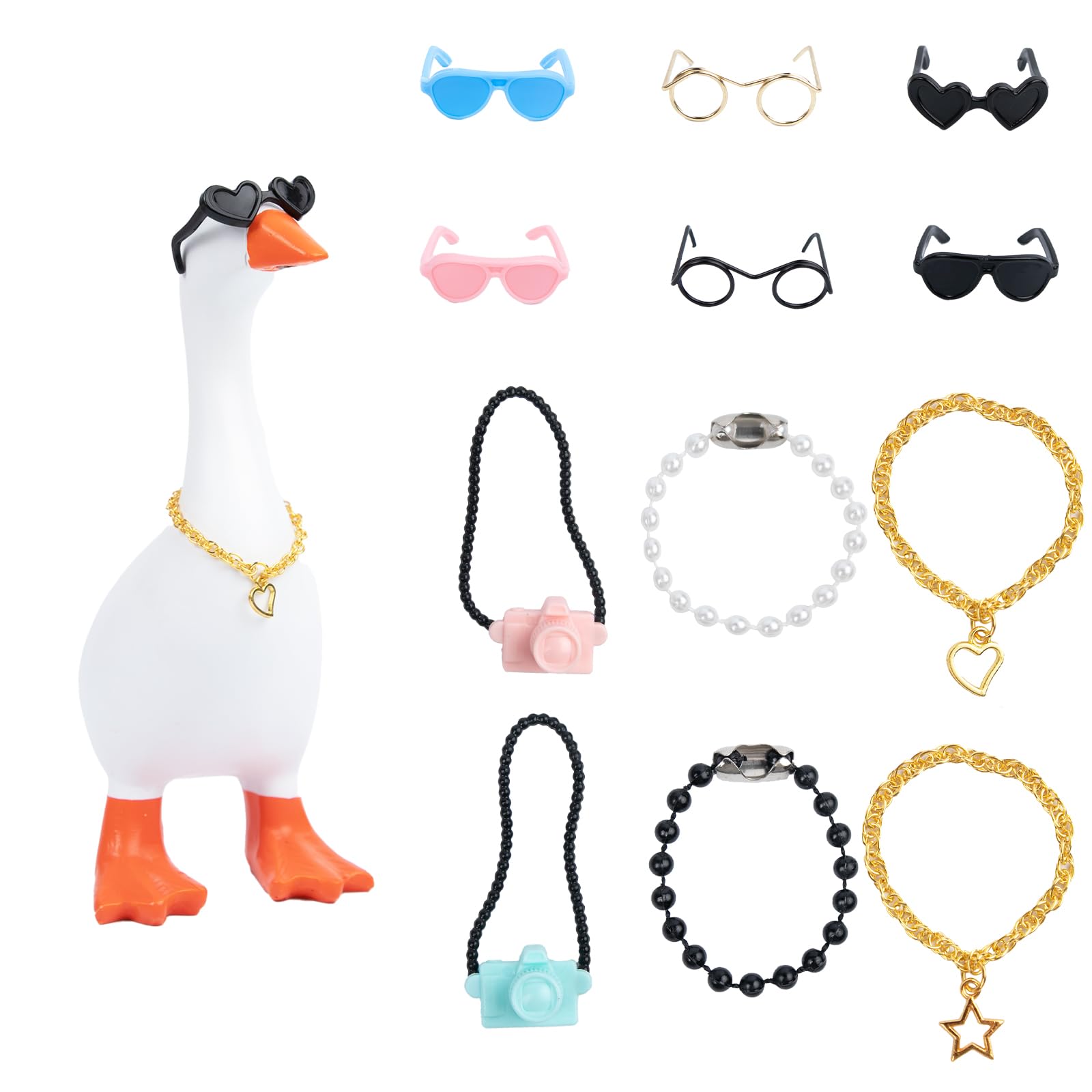 • 💎【Chic Desk Goose Chain Collars】Give your mini goose statue a fashionable makeover! From blingy gold chains to elegant pearls and fun camera designs, Each mini goose collars is crafted from durable, these mini goose chain collars designed for style and durability, this set brings fun, fashion, and lasting charm to your desk goose.
